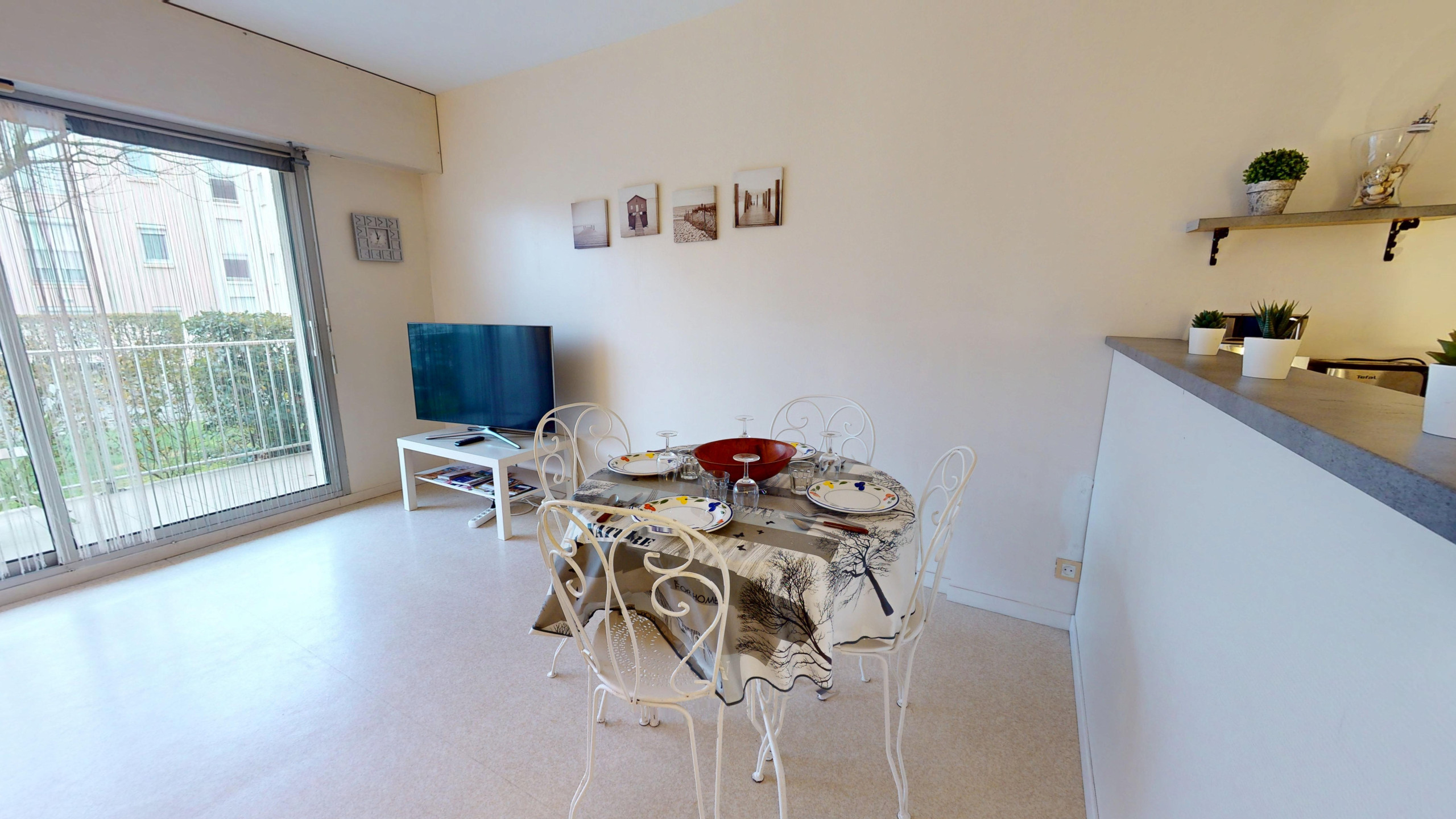 La pièce de vie se compose d’un espace salle à manger avec une table permettant d’accueillir 4 convives, idéal pour partager vos repas.