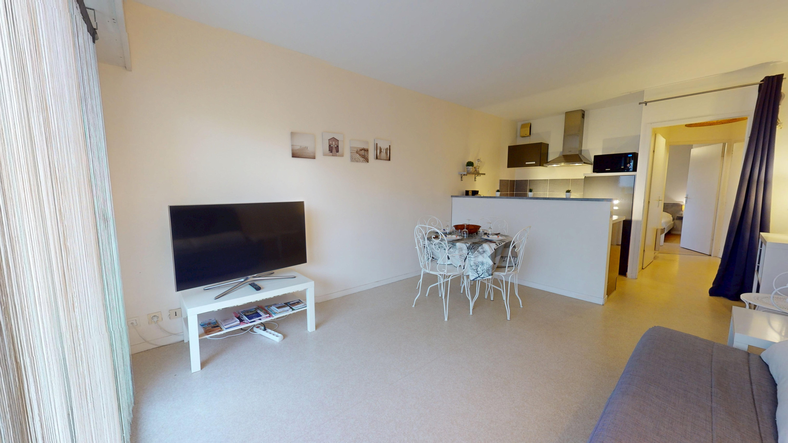 Cet appartement de 34 m², situé au rez-de-chaussée, peut accueillir jusqu’à 4 personnes. Son agencement fonctionnel et son ambiance soignée en font un lieu parfait pour se détendre après une journée de découvertes ou de plage.