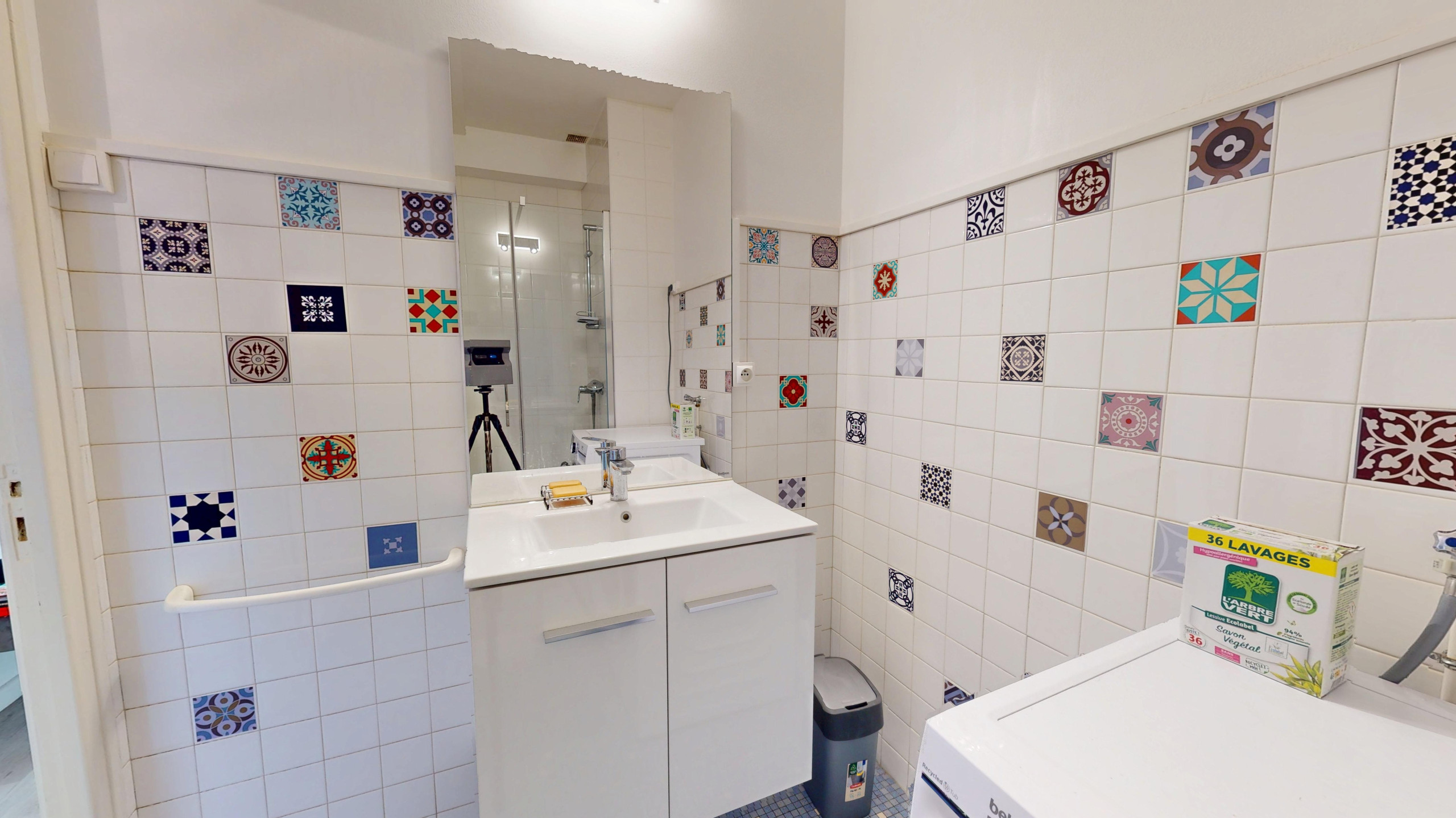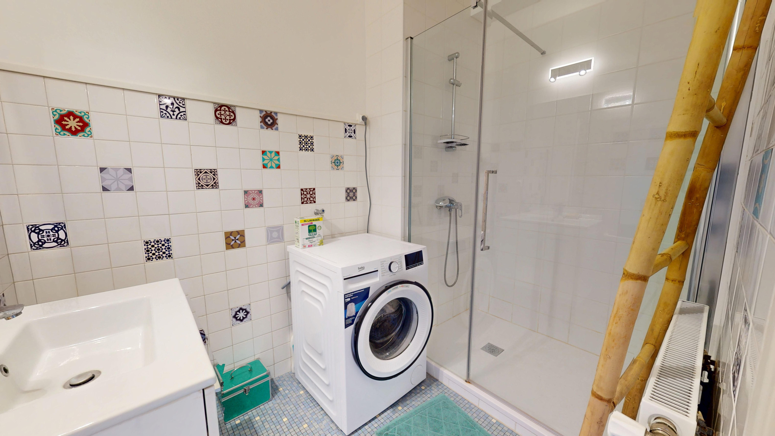 -Une salle de bain cosy avec grande douche, pensée pour votre confort.