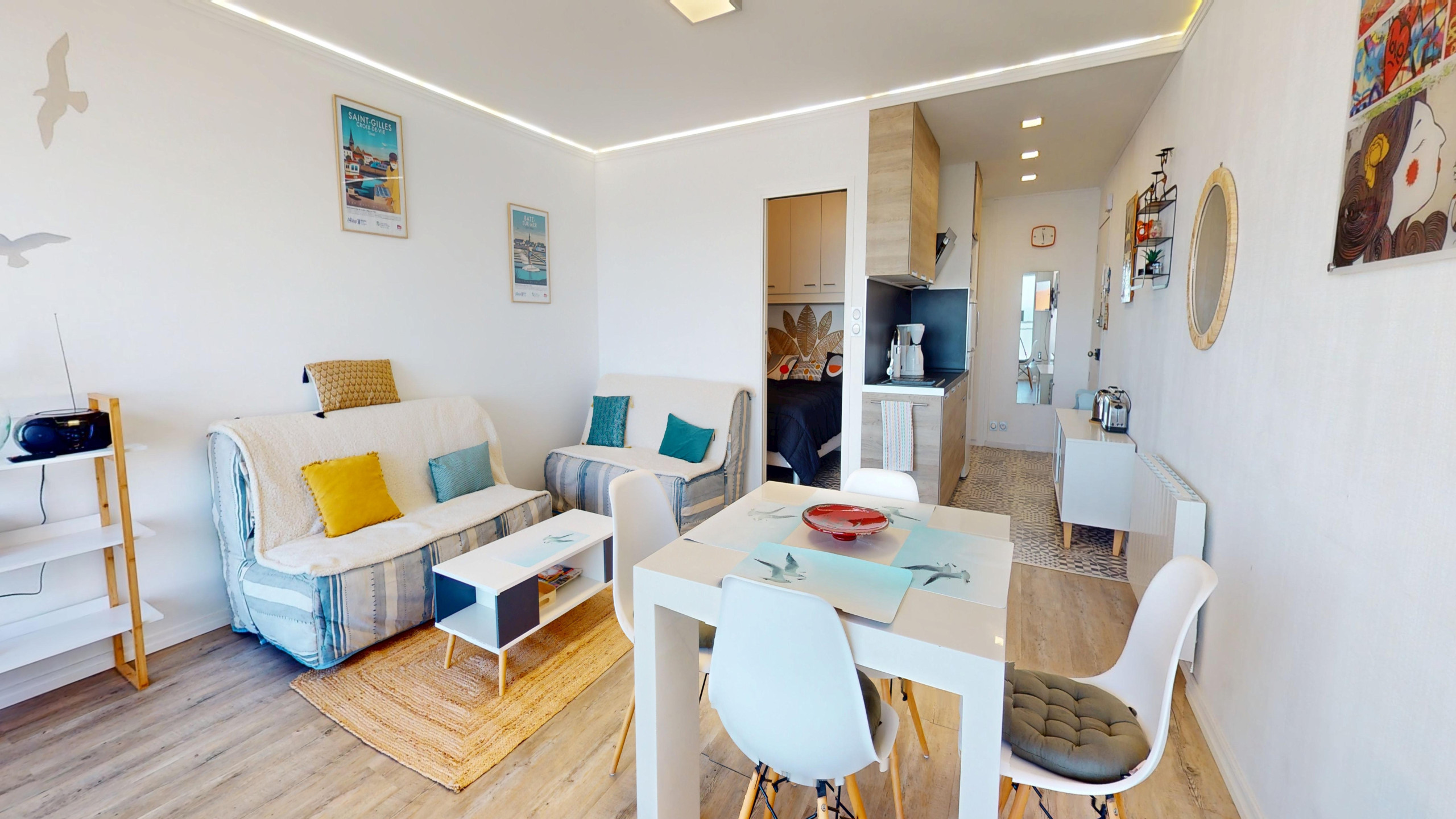 Cet appartement de 27 m², conçu pour accueillir jusqu’à 4 personnes, offre une atmosphère agréable et bien pensée, où chaque espace est optimisé pour votre confort.