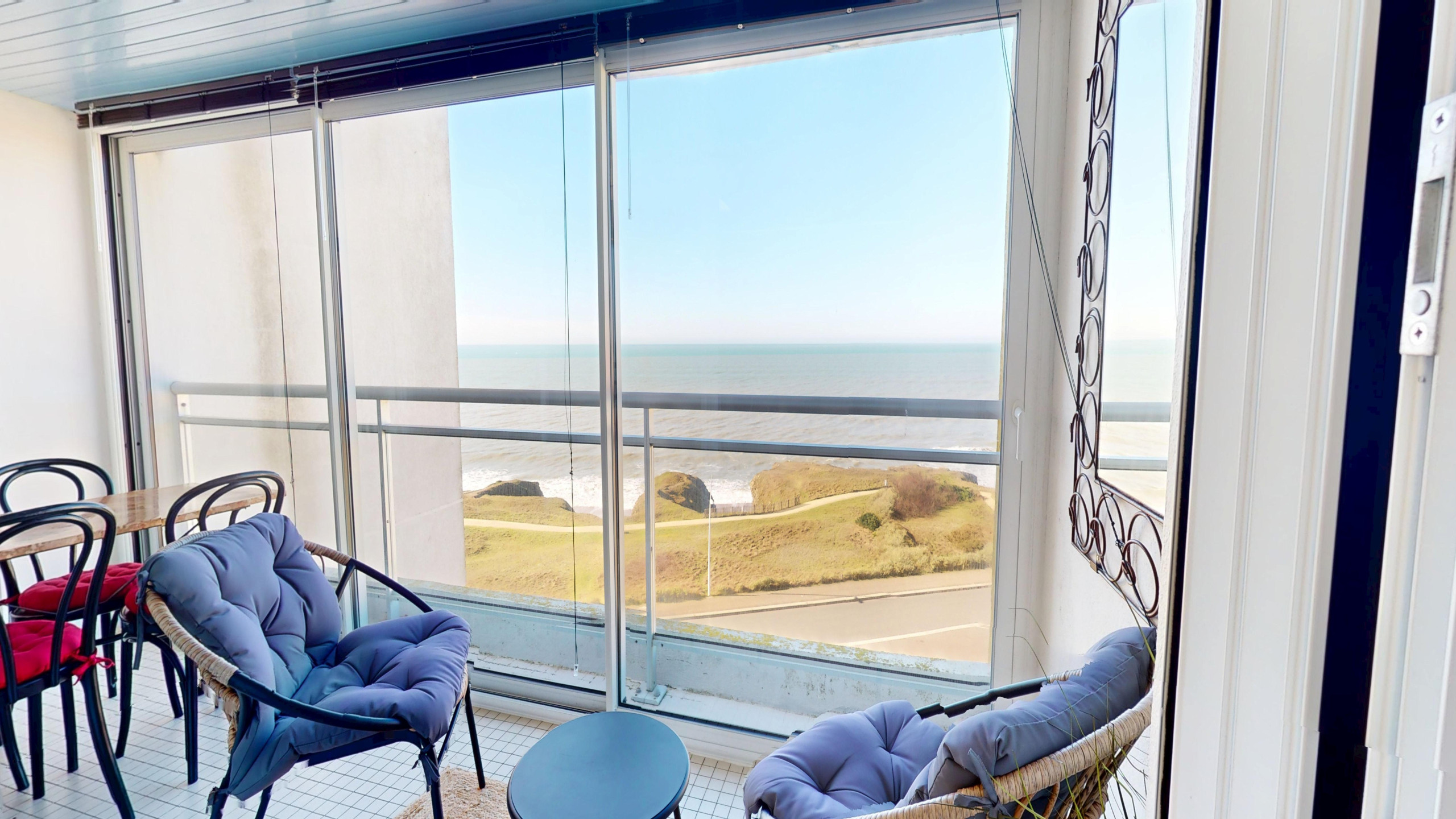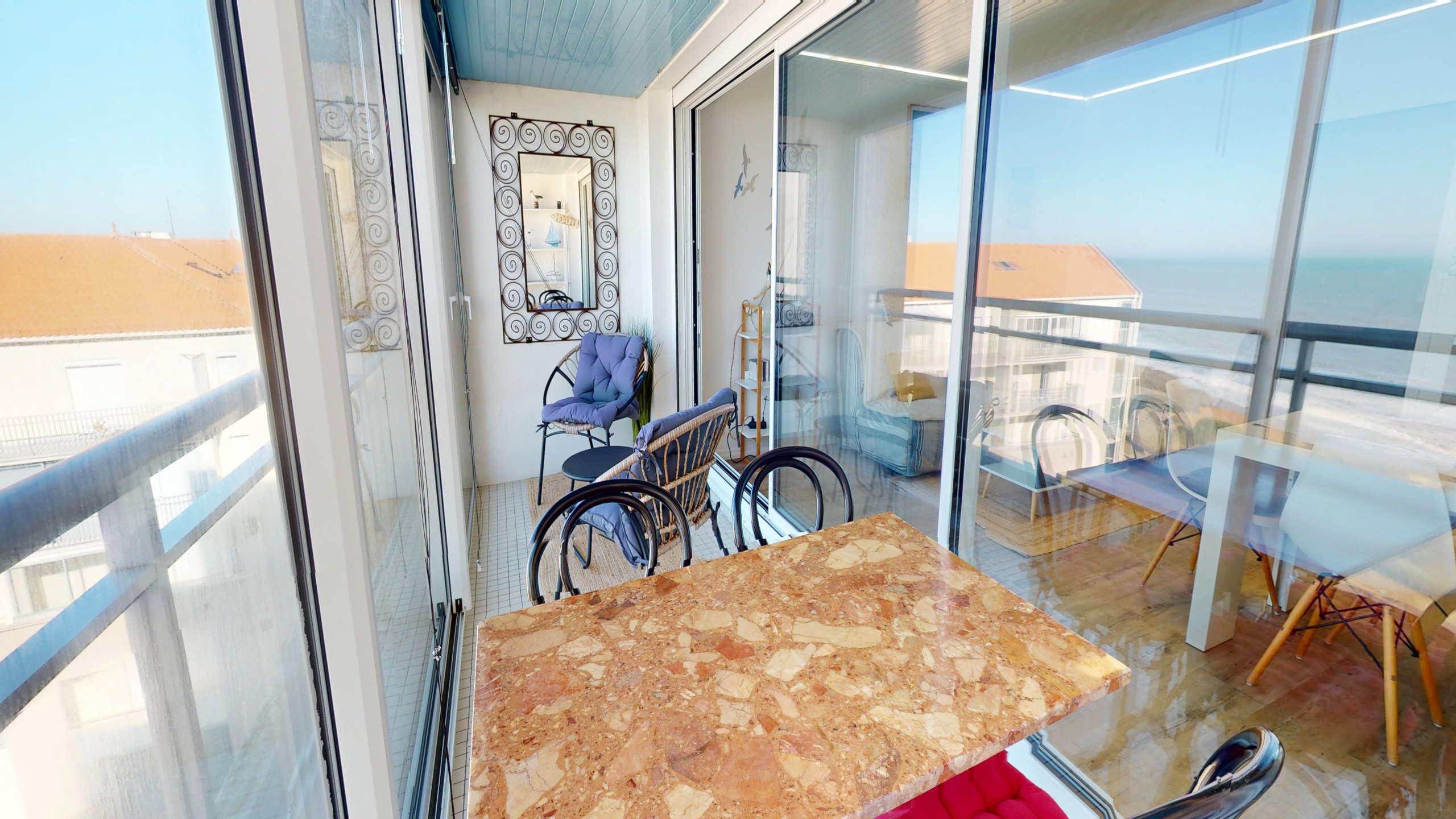 L’appartement dispose d’une loggia de 8 m², très agréable, aménagée avec du mobilier de jardin : un espace parfait pour prendre le petit-déjeuner ou profiter de l’air marin.