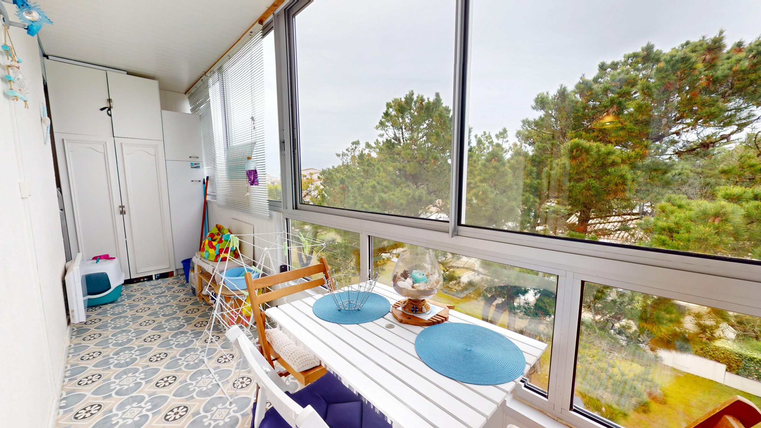 L’appartement dispose d’une loggia de 8 m², très agréable, aménagée avec du mobilier de jardin : un espace parfait pour prendre le petit-déjeuner ou profiter de l’air marin.