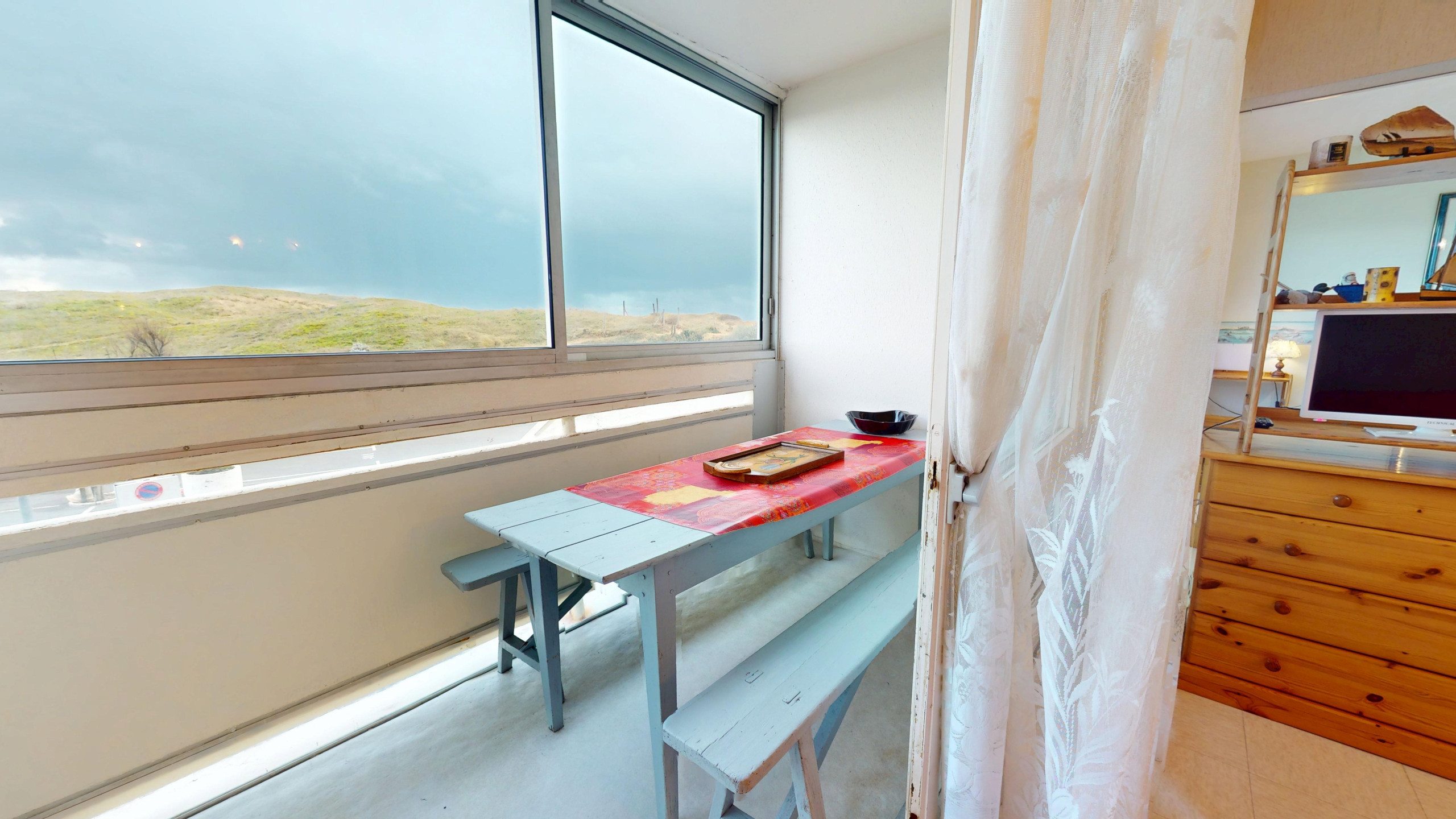 Vous profiterez d’une belle loggia de 10 m², aménagée avec du mobilier de jardin et offrant une vue splendide sur la mer, idéale pour vos repas ou vos moments de détente face à l’océan.