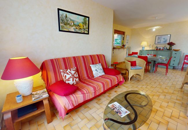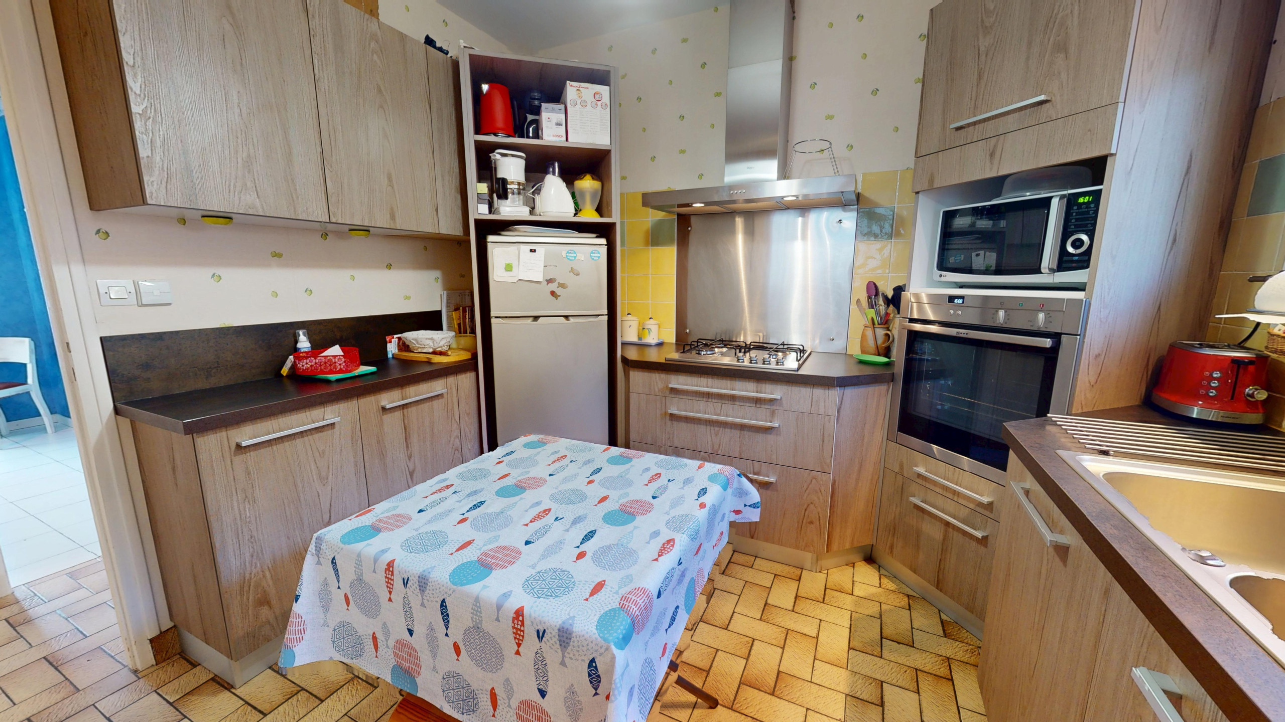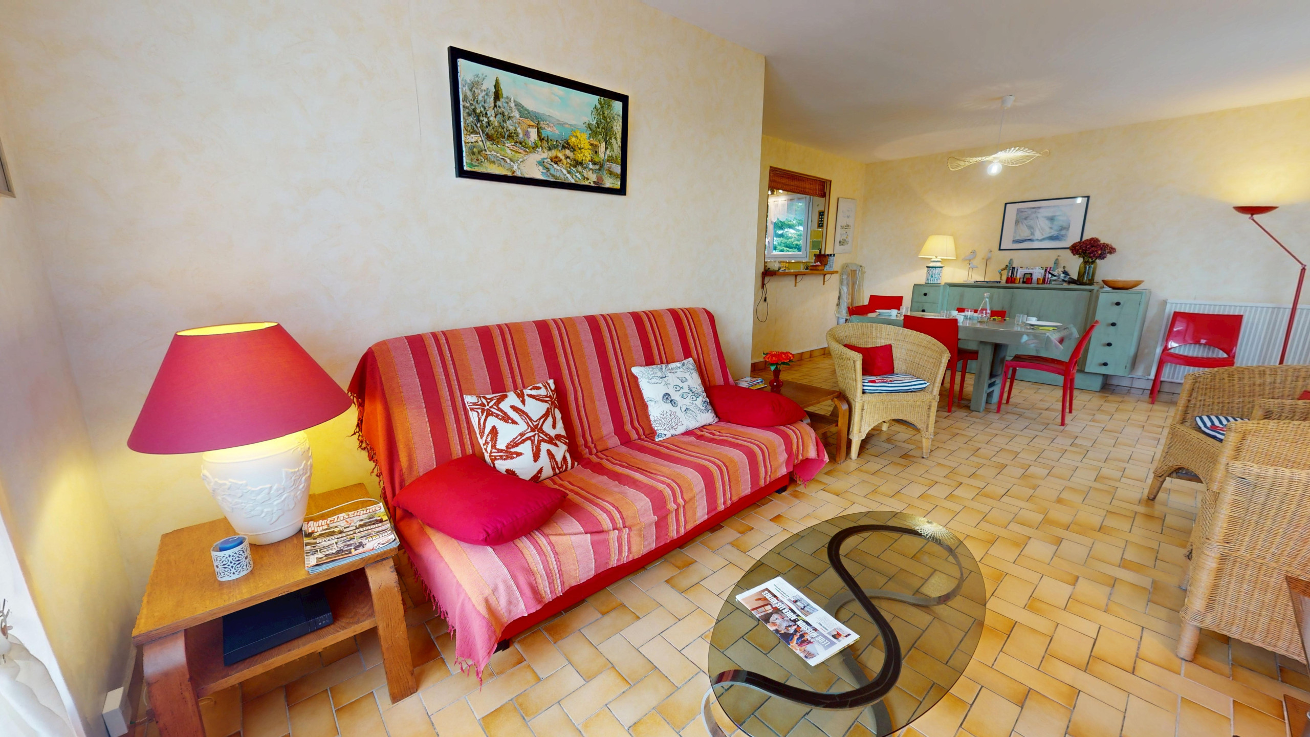 Le grand séjour baigné de lumière regroupe une salle à manger conviviale et un coin salon confortable équipé d’une télévision. La cuisine indépendante, entièrement aménagée et équipée, vous permet de préparer vos repas comme à la maison.