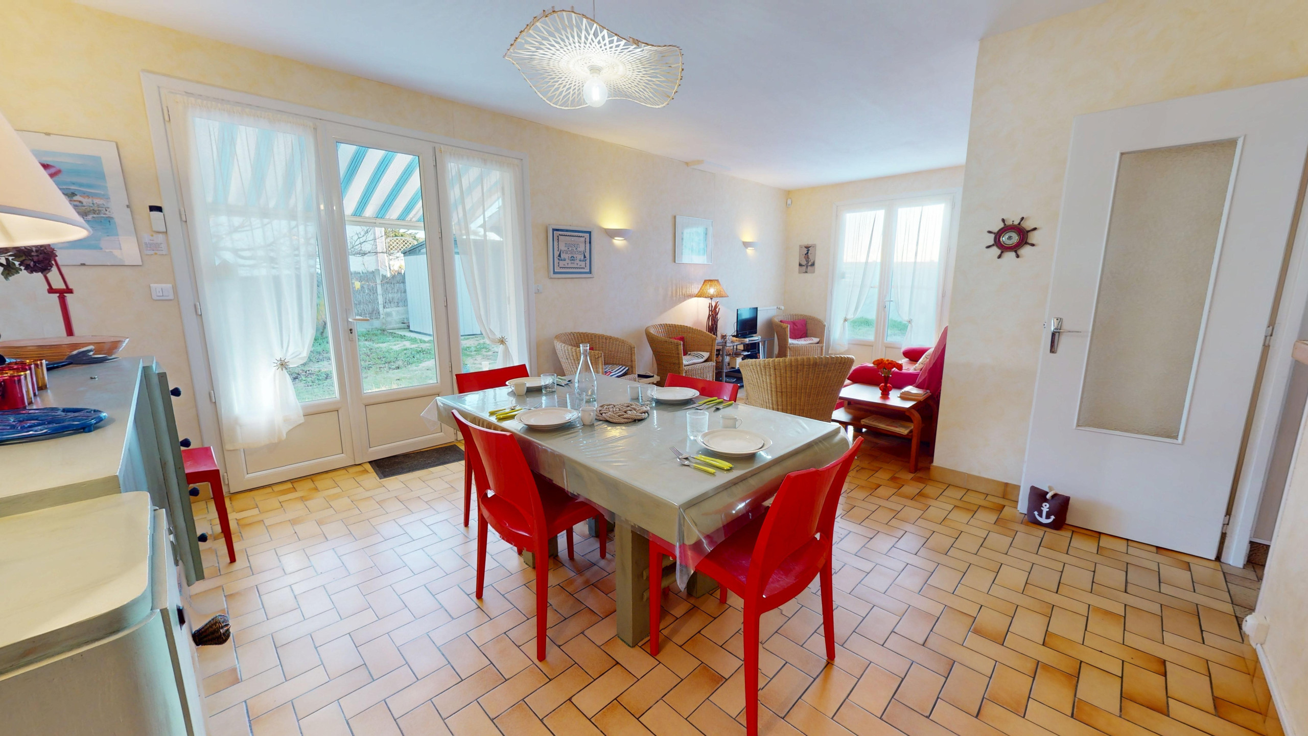 Notre maison offre 3 chambres spacieuses, une ambiance chaleureuse et une décoration soignée. Située dans une zone calme et proche de la mer, elle est également à seulement 2 km des commerces, du supermarché et des restaurants tels que "Les Cabines".