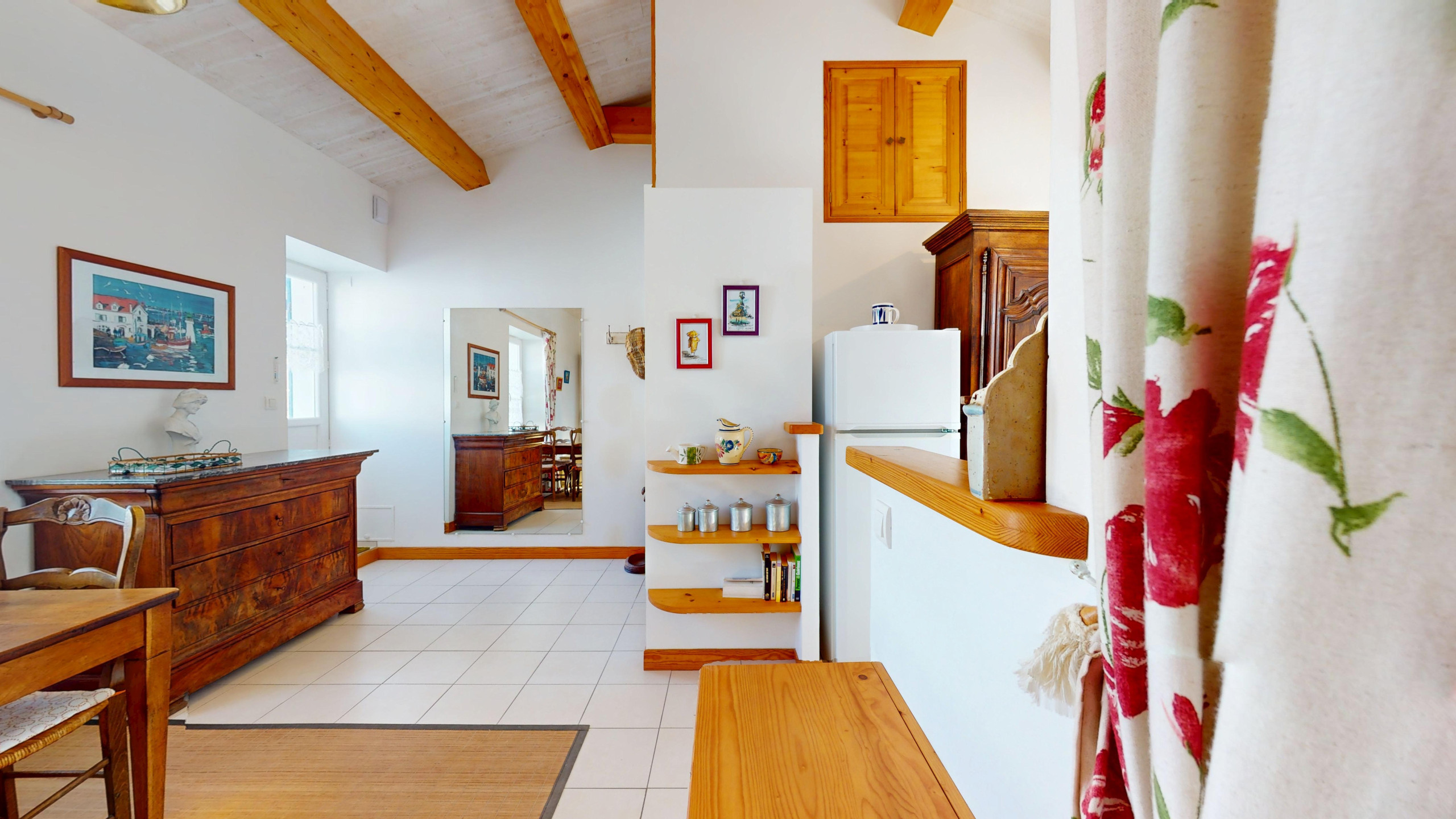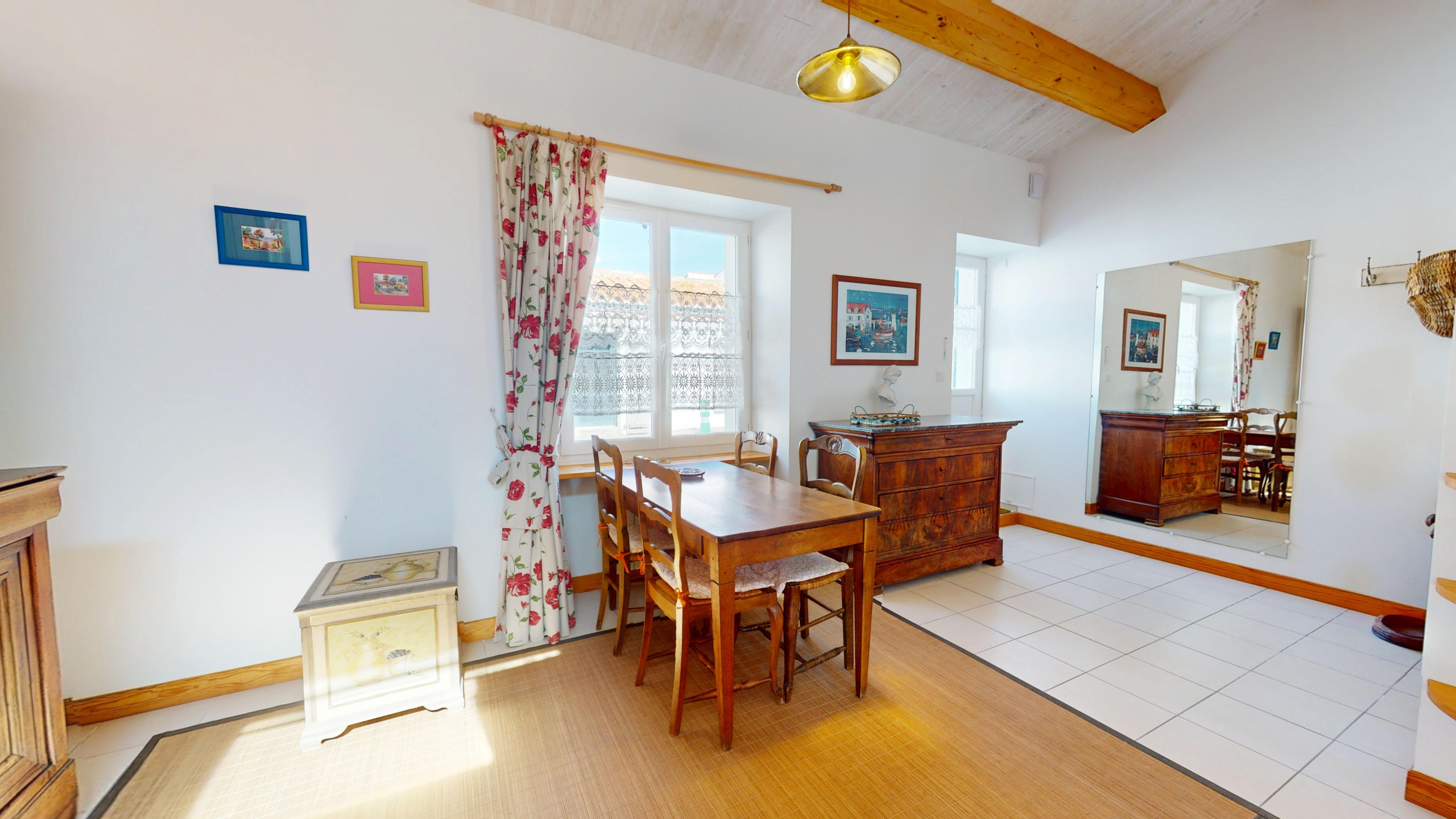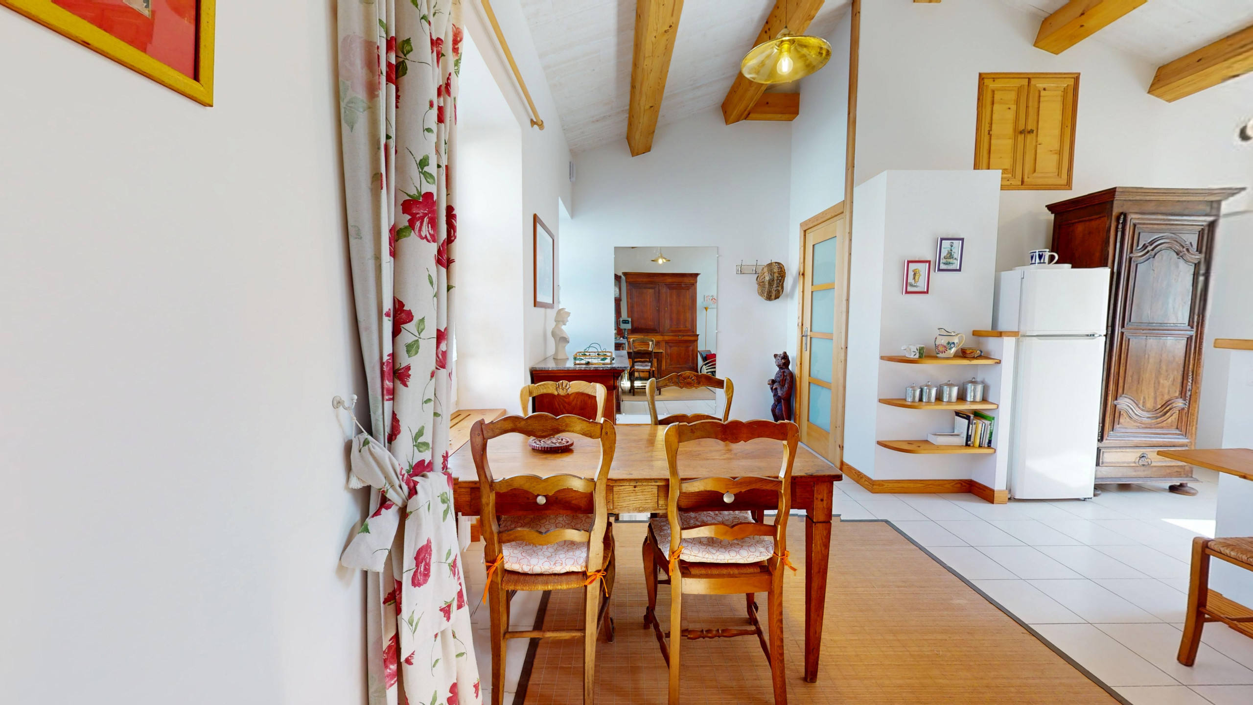 Cette maison de plain-pied mêle le charme de l’ancien à une décoration simple et agréable. Elle se compose de :