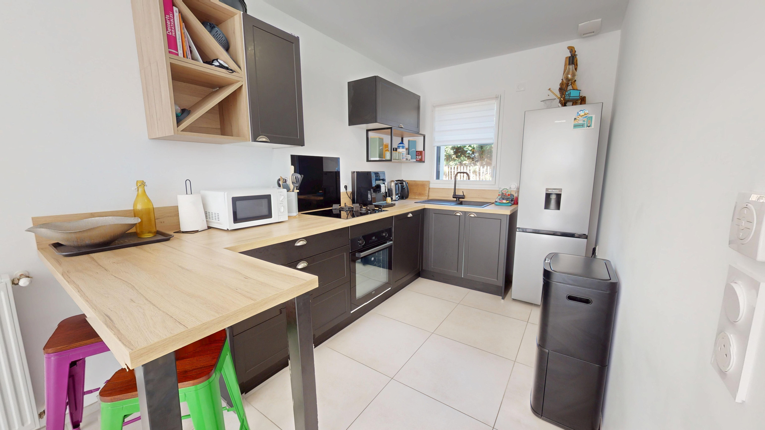 - Une cuisine rénovée et bien équipée (réfrigérateur, congélateur, plaques de cuisson, micro-ondes, four) avec un coin repas.