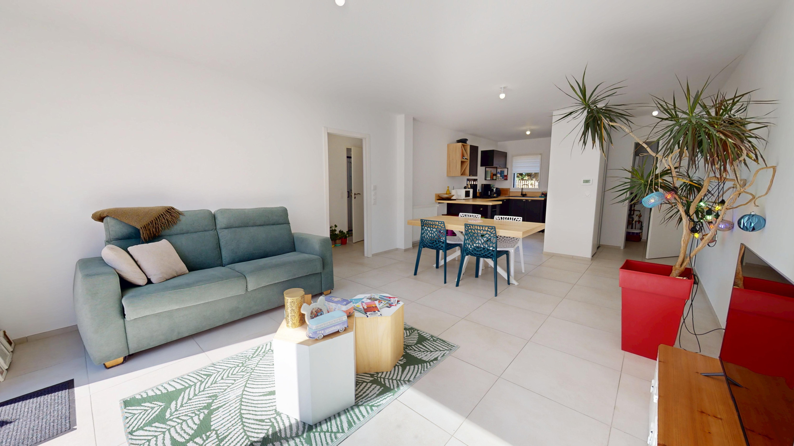 - Une entrée sur pièce de vie avec coin salon et télévision.