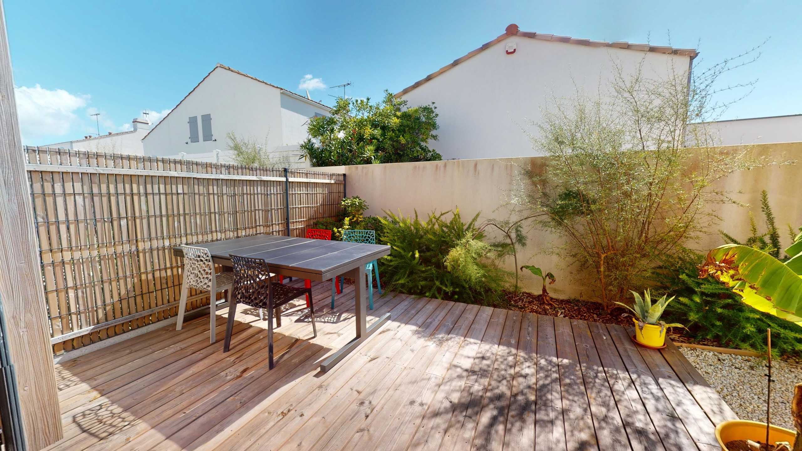 - Une terrasse discrète, à l’abri des regards, parfaite pour les repas ou les instants de détente.