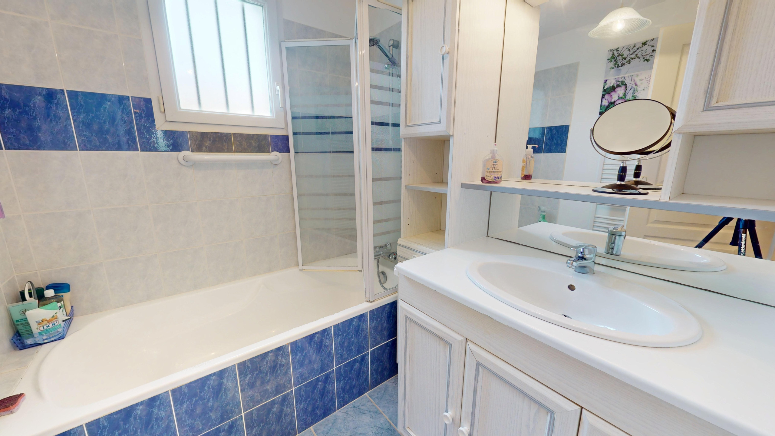 La salle de bain comprend une baignoire, idéale pour un moment de détente. Côté nuit, vous trouverez deux chambres confortables dotées chacune d’un lit double (140x190) pour des nuits paisibles.