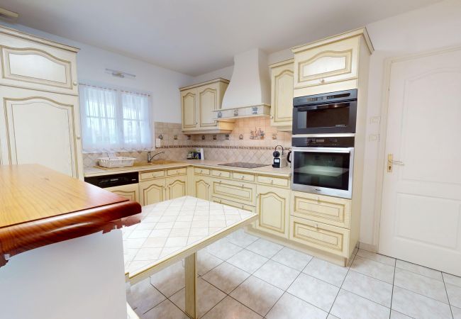 - 🍽️ Cuisine ouverte entièrement équipée : four, micro-ondes, plaques de cuisson, lave-vaisselle, réfrigérateur, cafetière… tout le nécessaire pour vos repas en toute liberté.