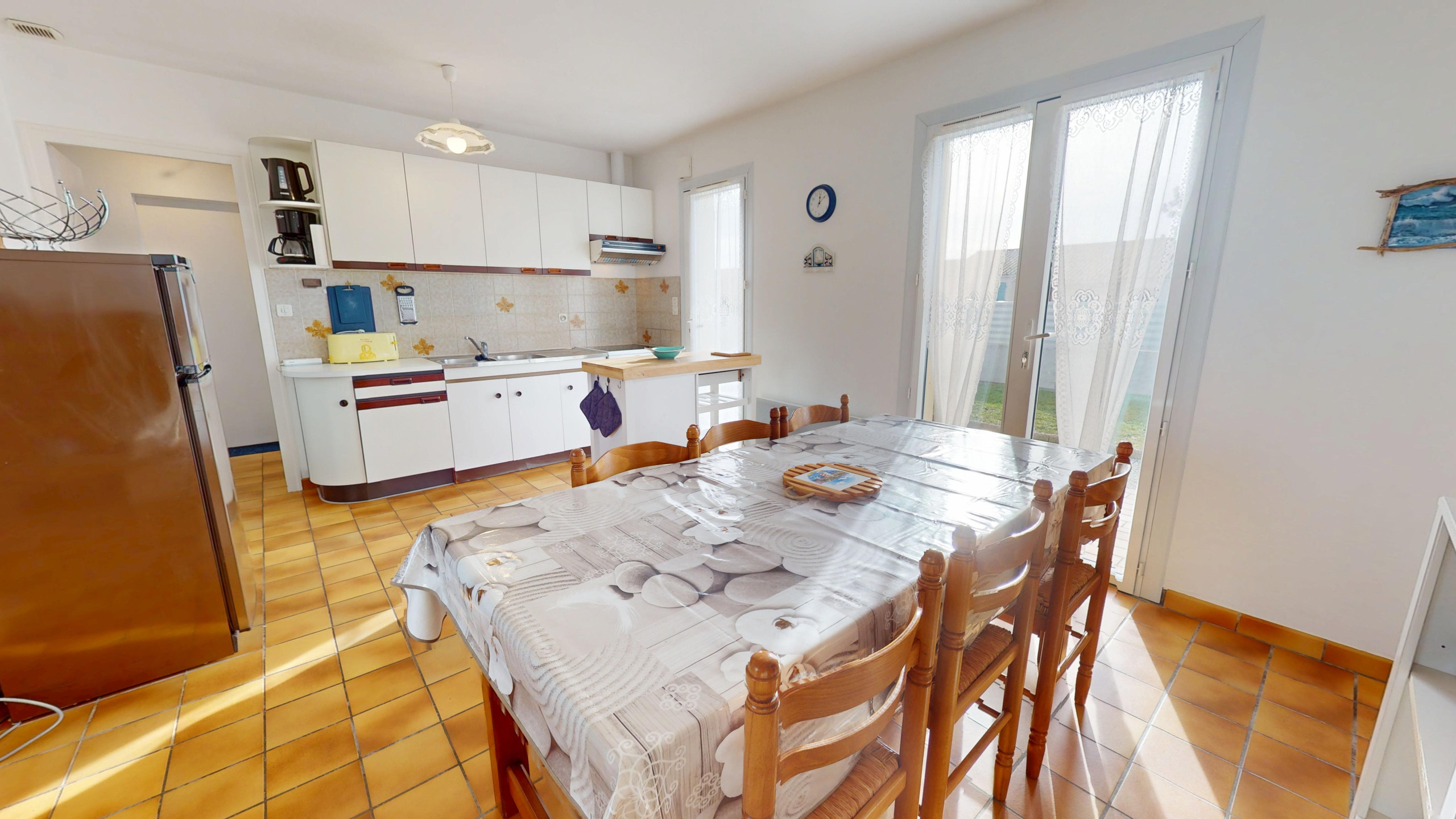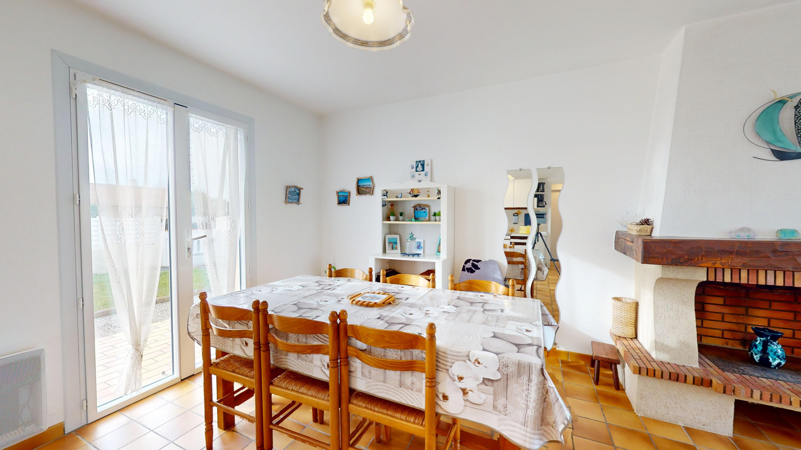 La salle à manger attenante offre une grande table idéale pour partager vos repas en toute convivialité.