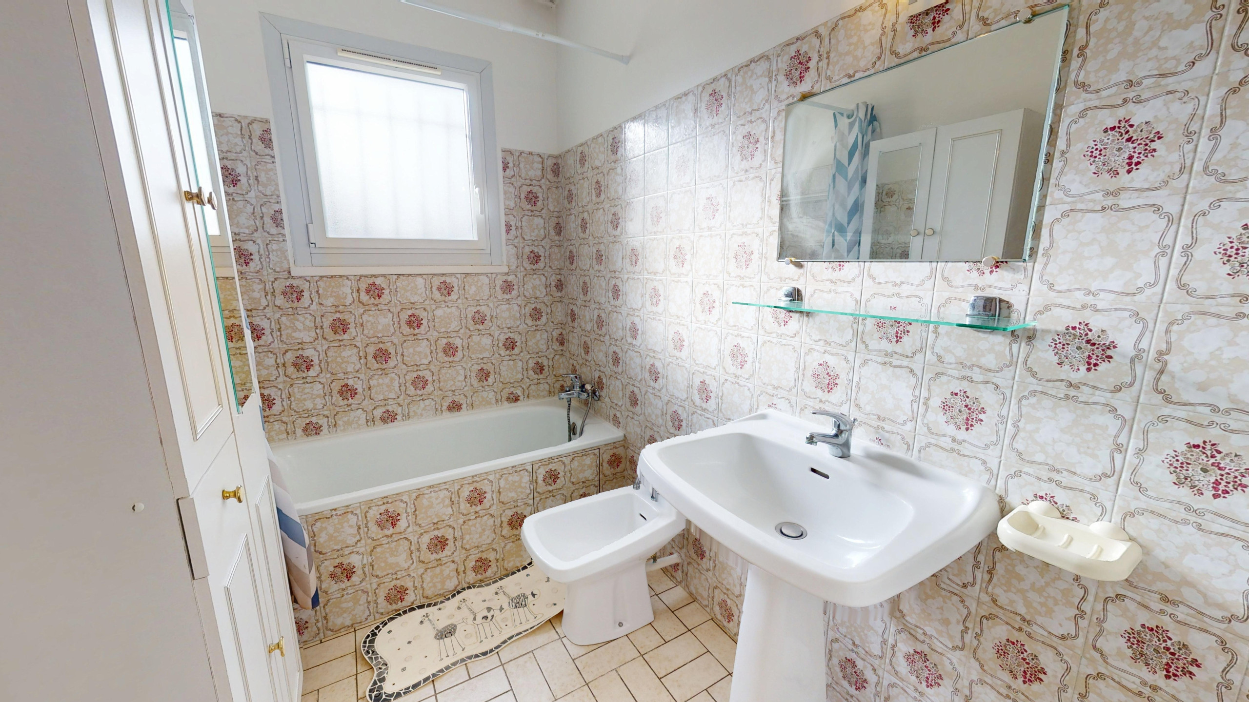Vous disposez également d’une salle de bain avec baignoire et bidet, ainsi que de WC séparés pour plus de confort.