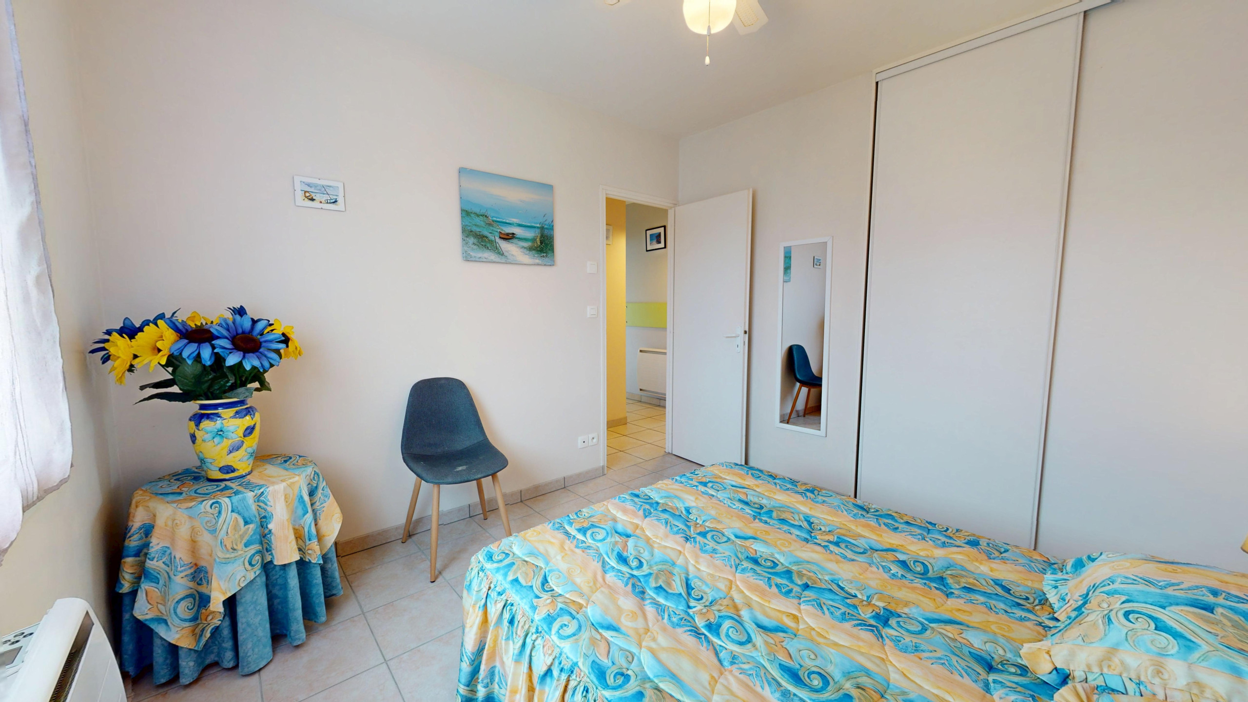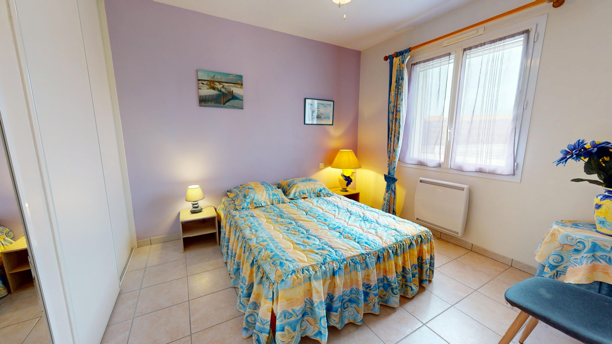 Chambre 2 : Deux lits simples (90x190) astucieusement collés pour former un grand lit double.