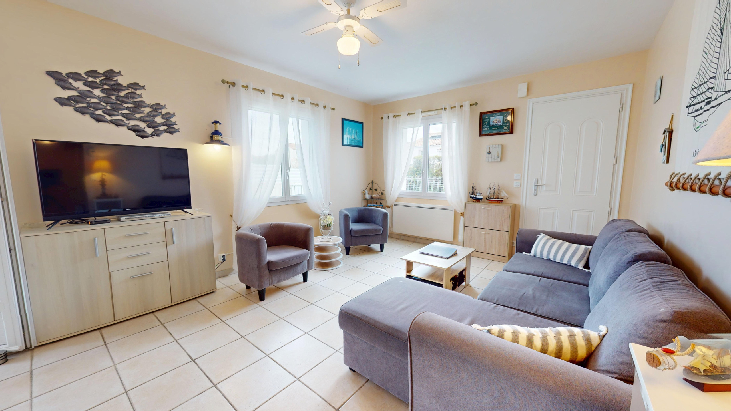 Un salon chaleureux : Un véritable cocon douillet avec télévision, idéal pour vos moments de détente.