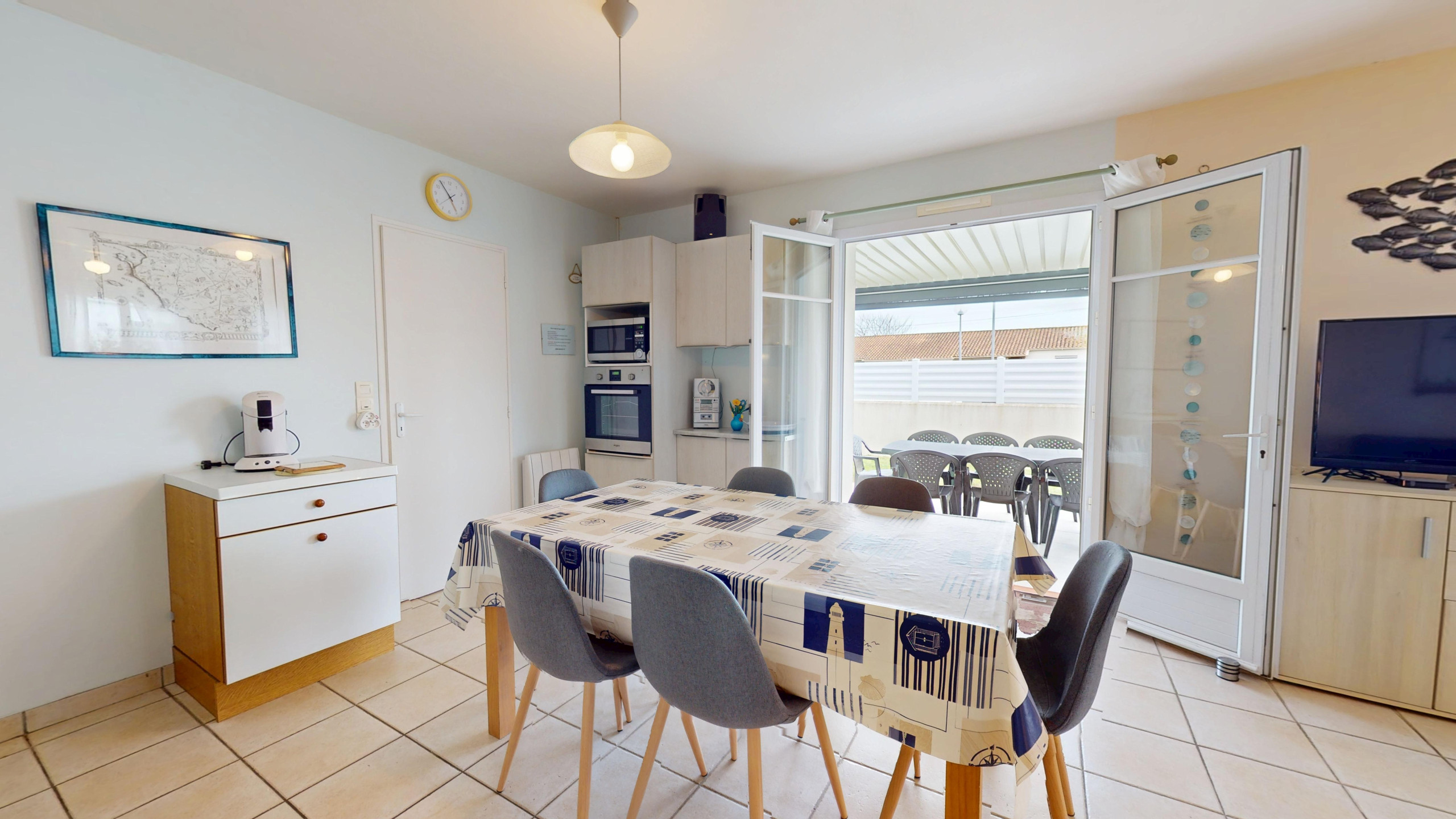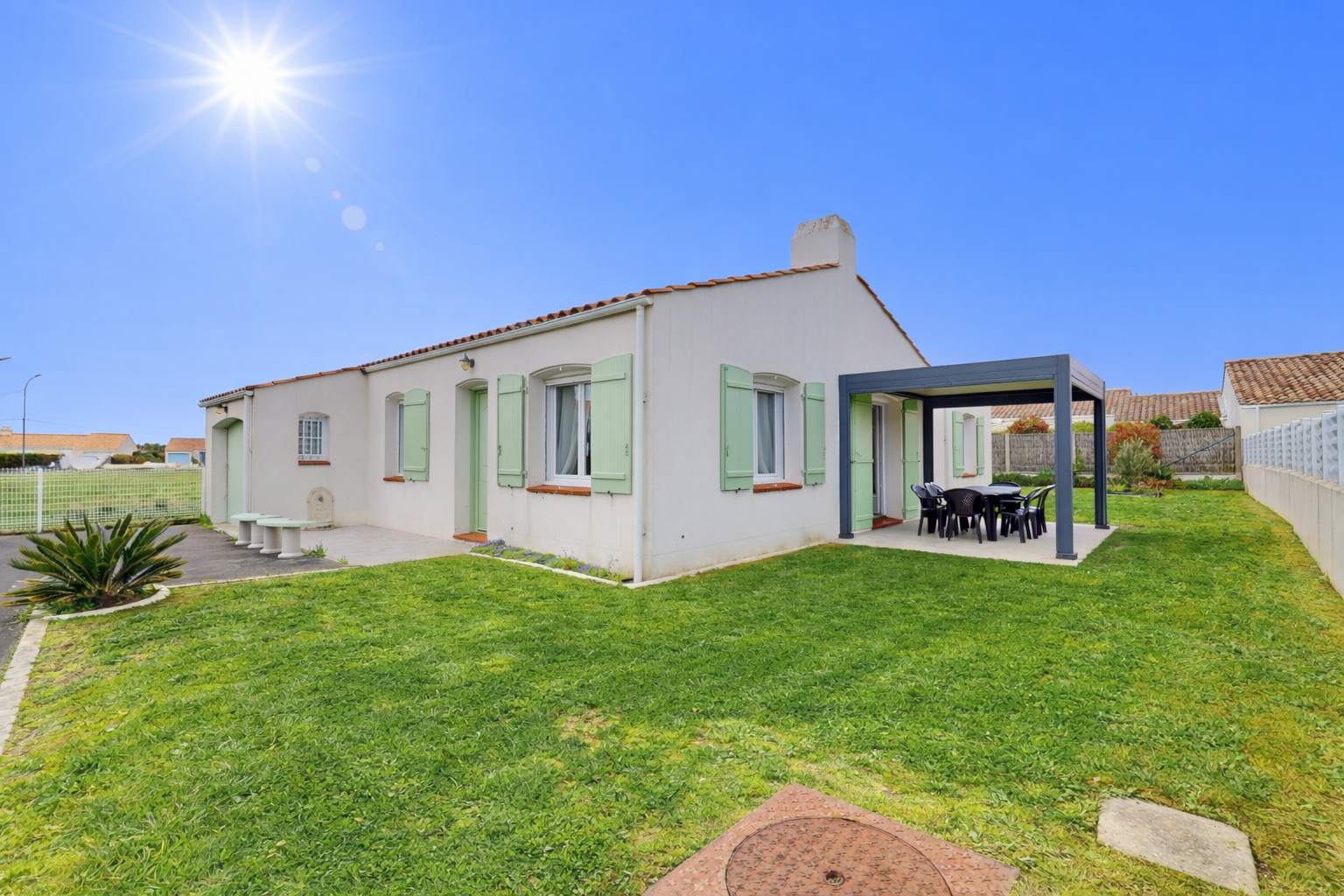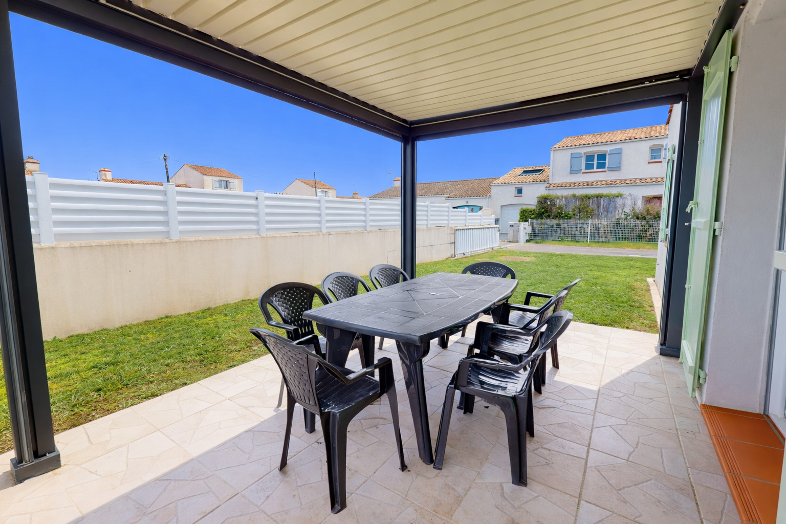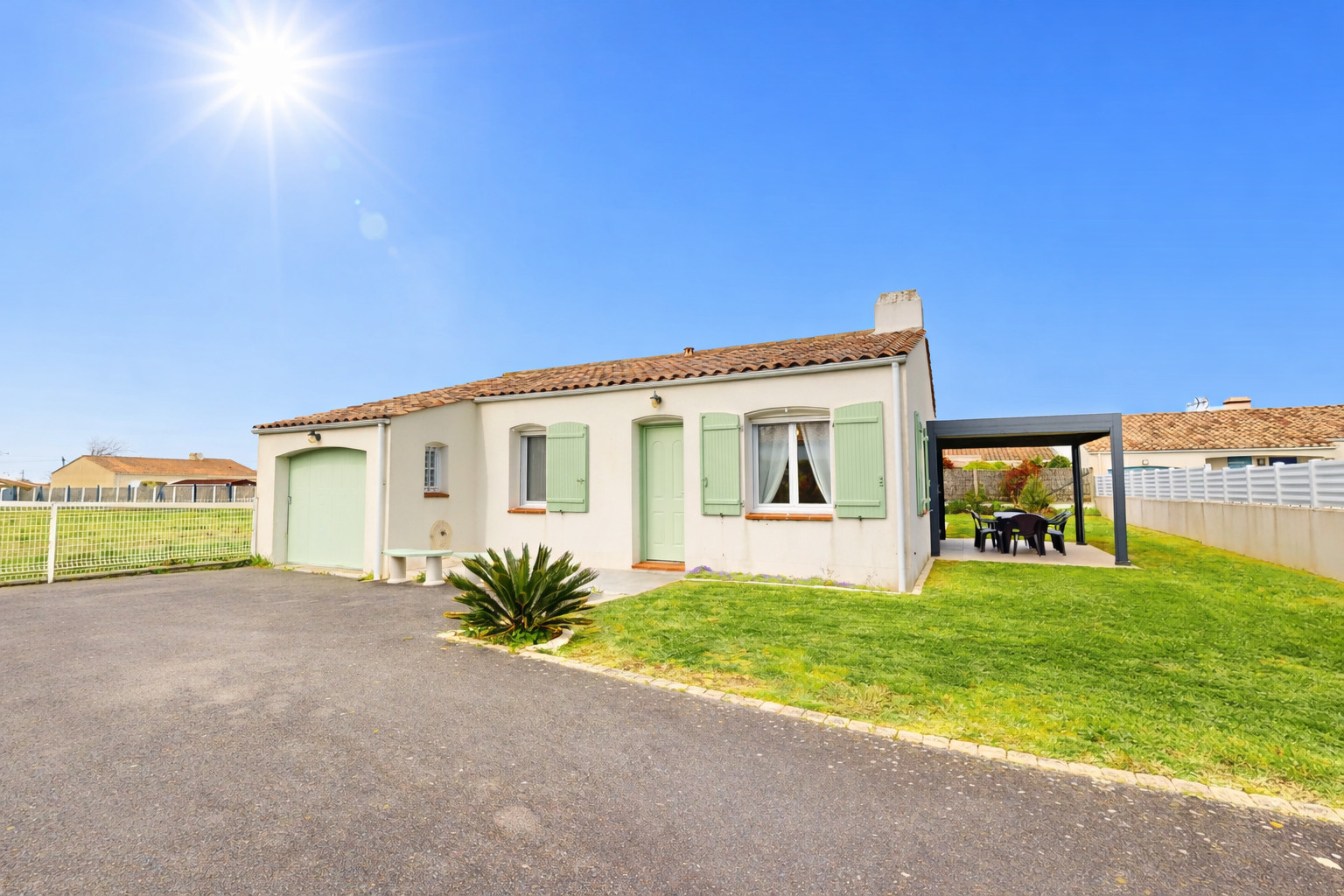 Profitez pleinement de la douceur vendéenne grâce à un jardin clos et une belle terrasse équipée de mobilier de jardin. C’est l’endroit rêvé pour vos petits-déjeuners au soleil ou vos soirées d'été. Pour votre tranquillité, un stationnement privé est prévu pour au moins 2 voitures directement devant la maison, à l'intérieur de la propriété après le portail.