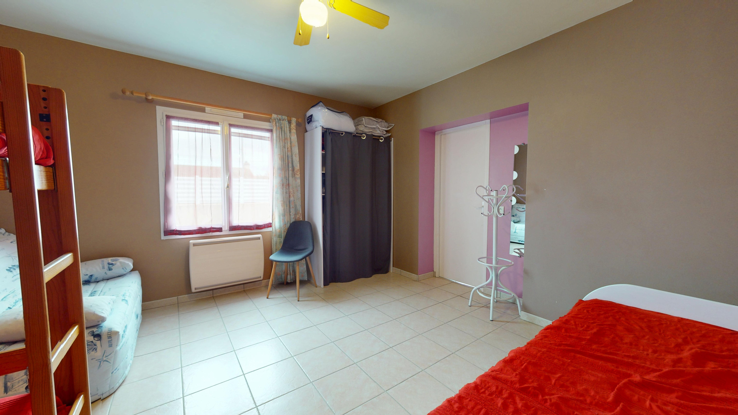 -Chambre 2 : lit double 140 x 190 + lits superposés (2 x 90 x 190)