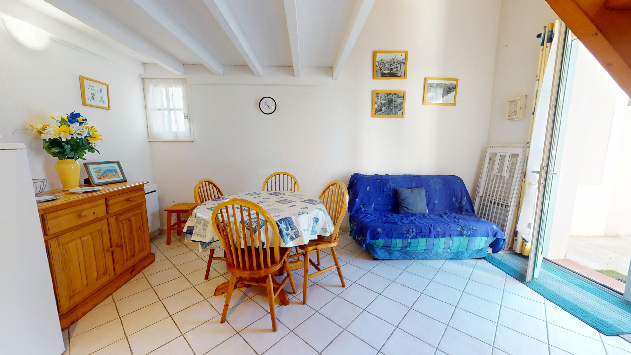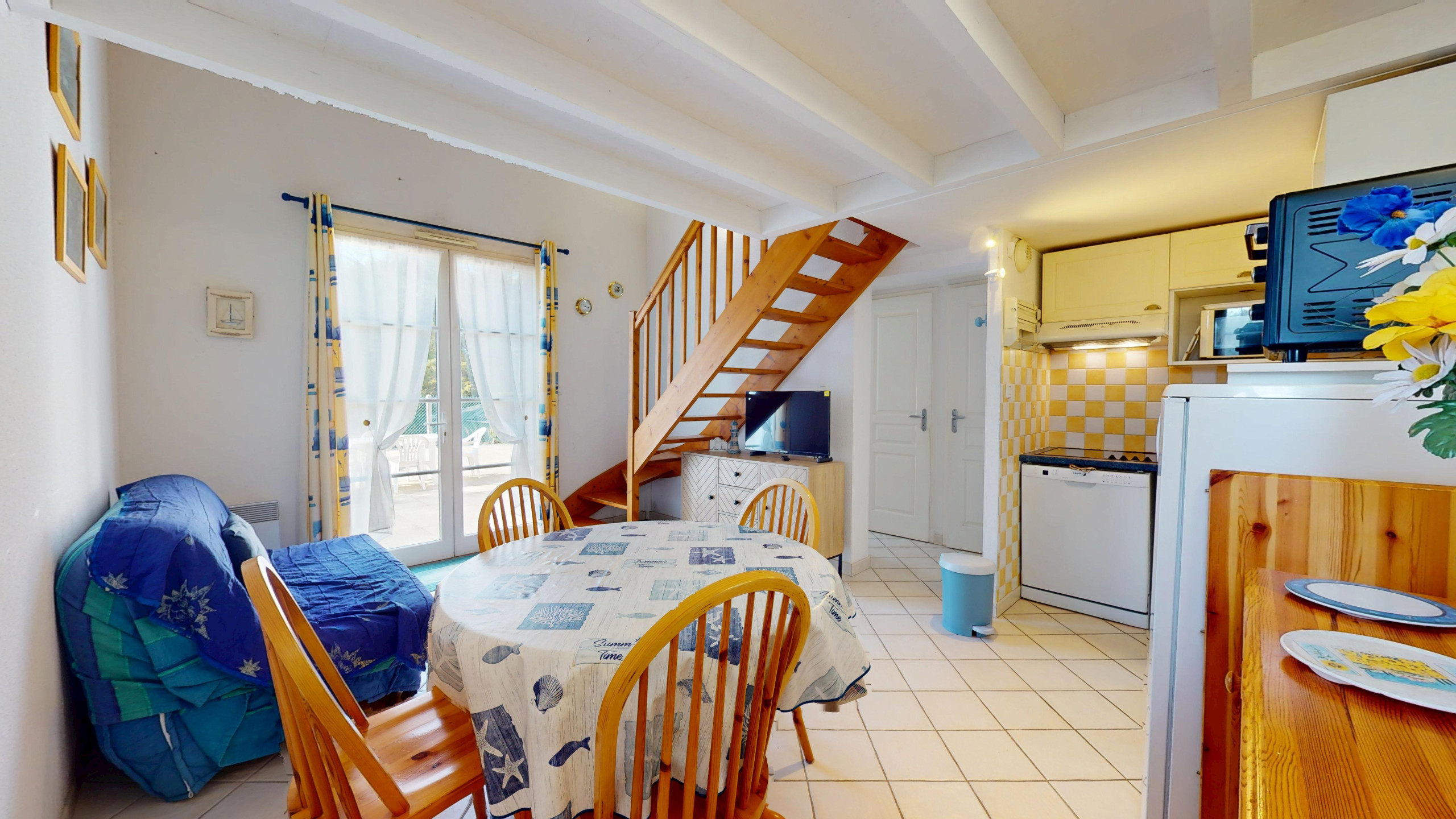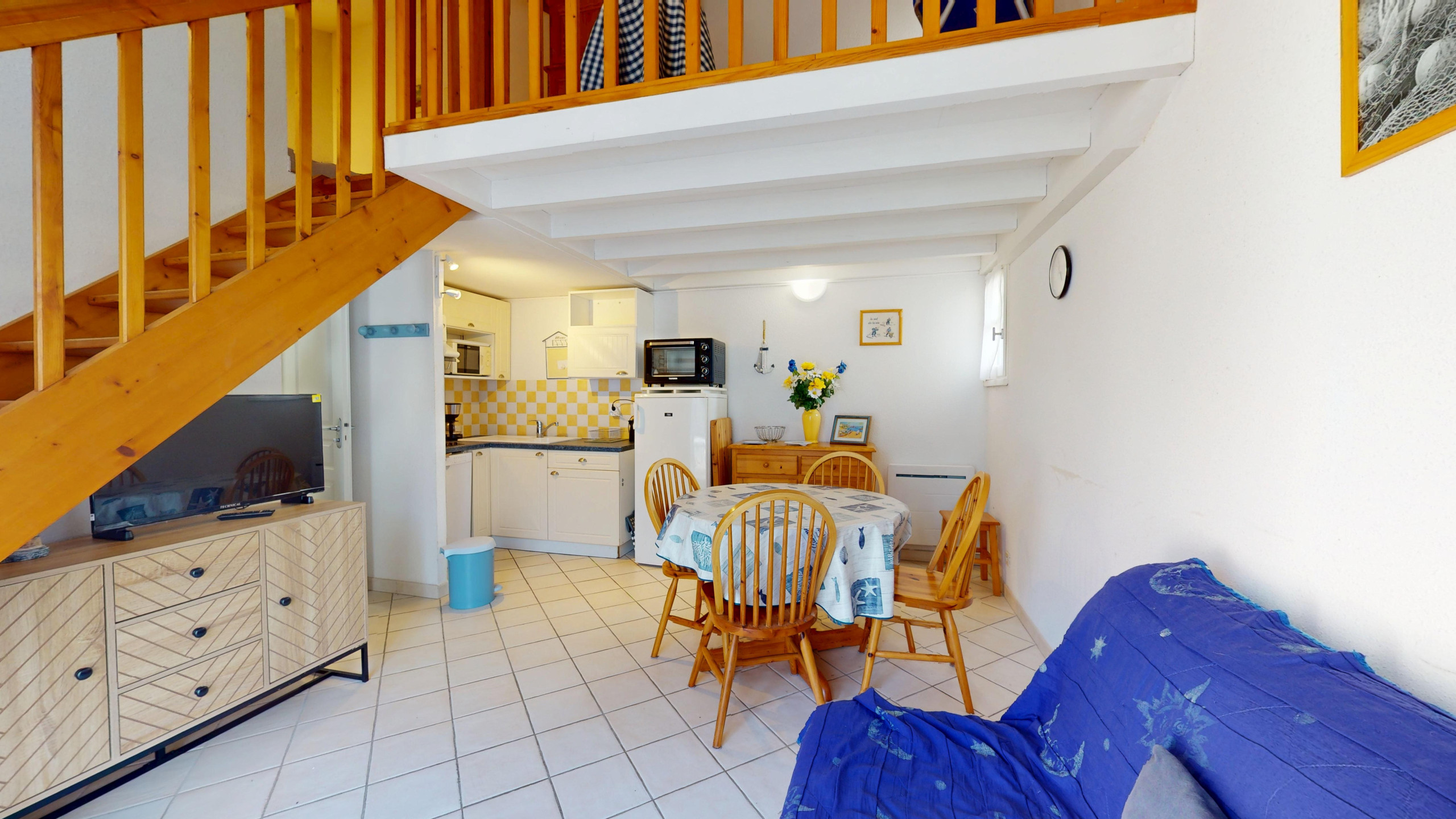 La villa se distingue par ses volumes confortables et sa décoration soignée. Au rez-de-chaussée, vous découvrirez une grande piÚce de vie lumineuse comprenant un salon cosy avec télévision, une jolie table à manger conviviale et une cuisine ouverte moderne entiÚrement équipée (plaques à induction et tout le nécessaire culinaire). CÎté nuit, la maison propose une chambre avec un lit double (140x190) et une vaste mezzanine abritant un second lit double (140x190) ainsi qu'un lit simple (90x190). Une spacieuse salle de bain avec baignoire et des WC séparés complÚtent ce bien.