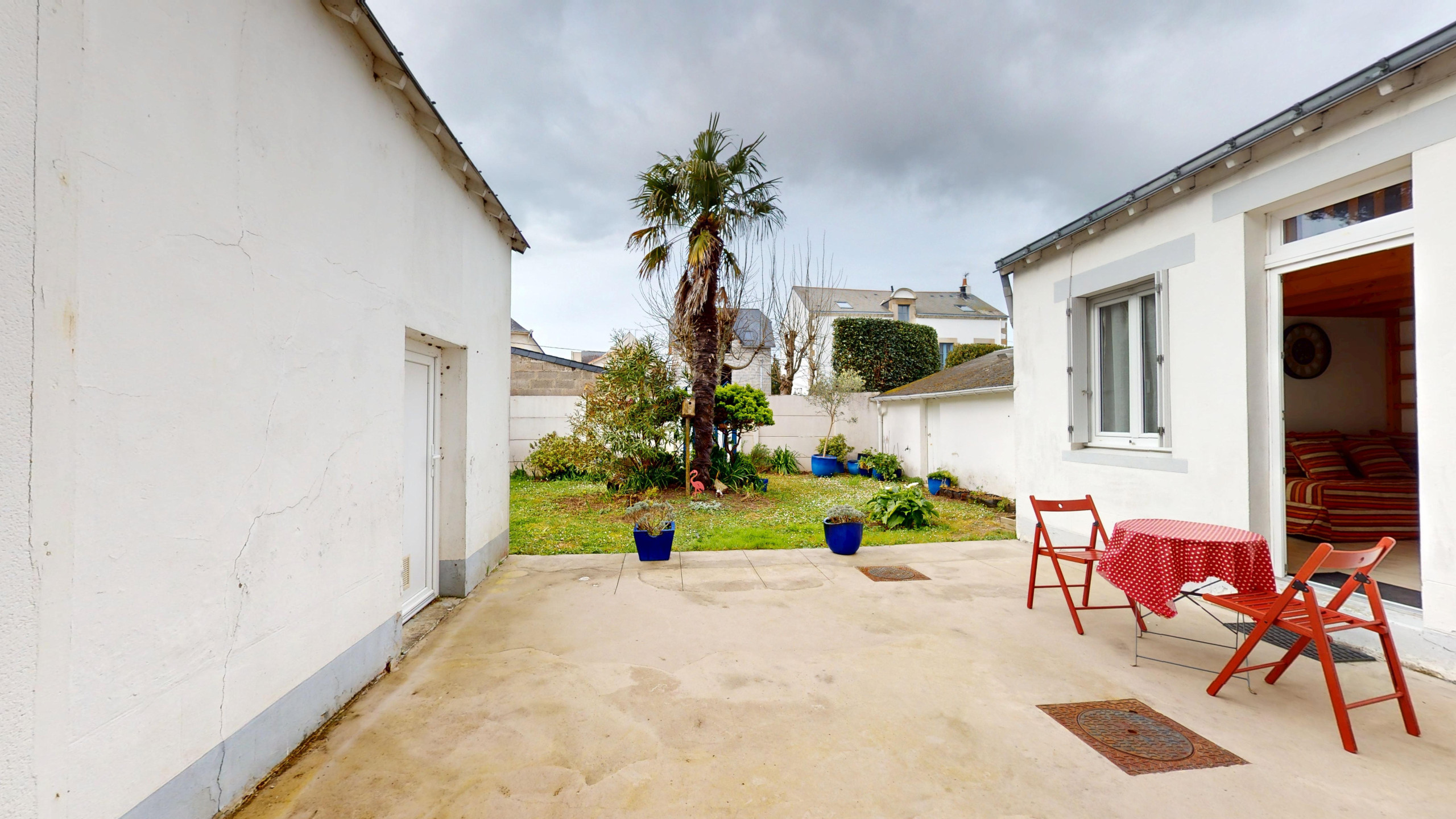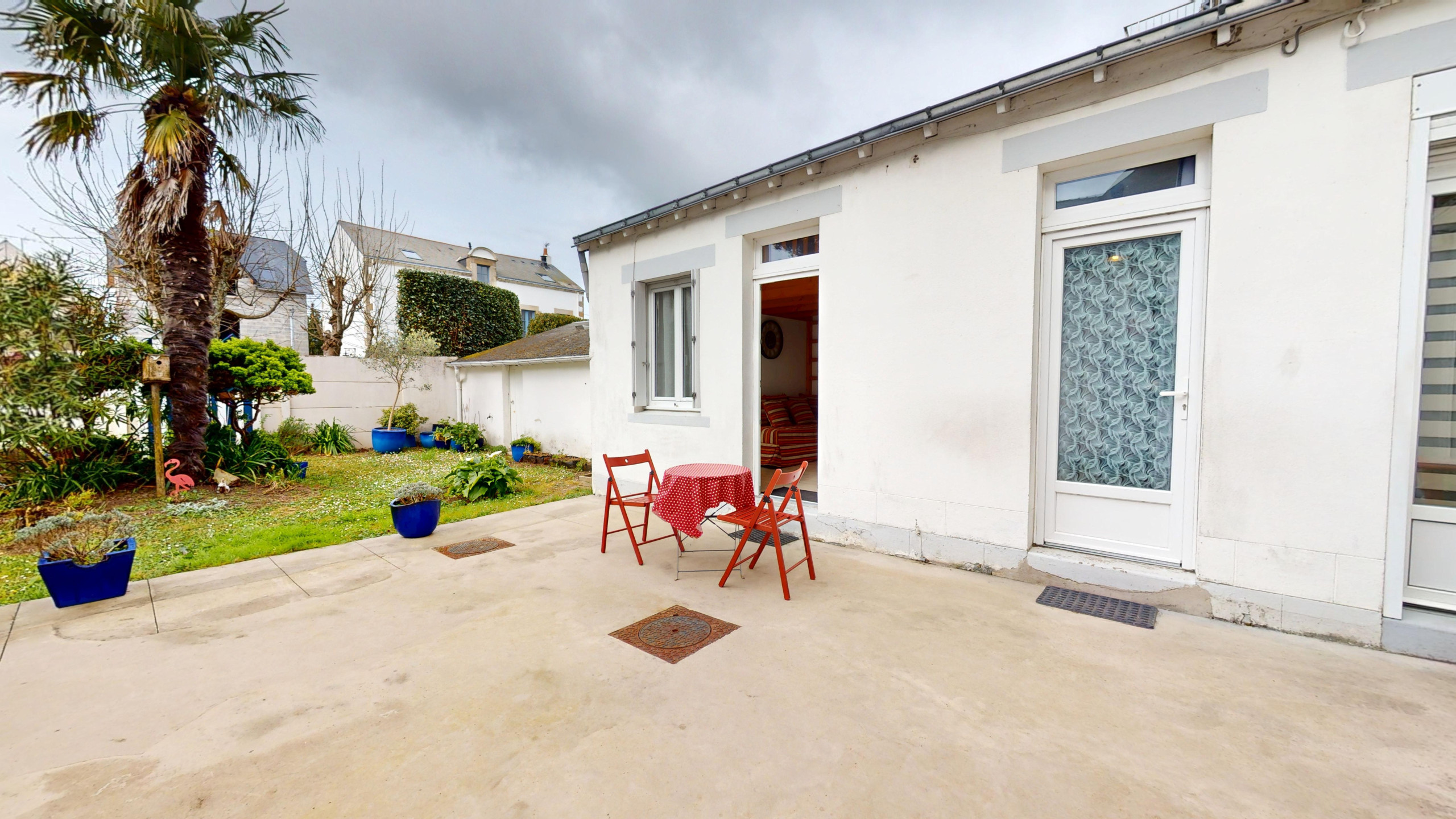 L’atout majeur de ce logement ? Situé au rez-de-chaussée, il vous permet de profiter directement d’une cour close avec un agréable coin d’herbe. Vous disposerez de mobilier de jardin pour savourer vos petits-déjeuners au grand air ou un verre en fin de journée après une escapade sur la côte sauvage.