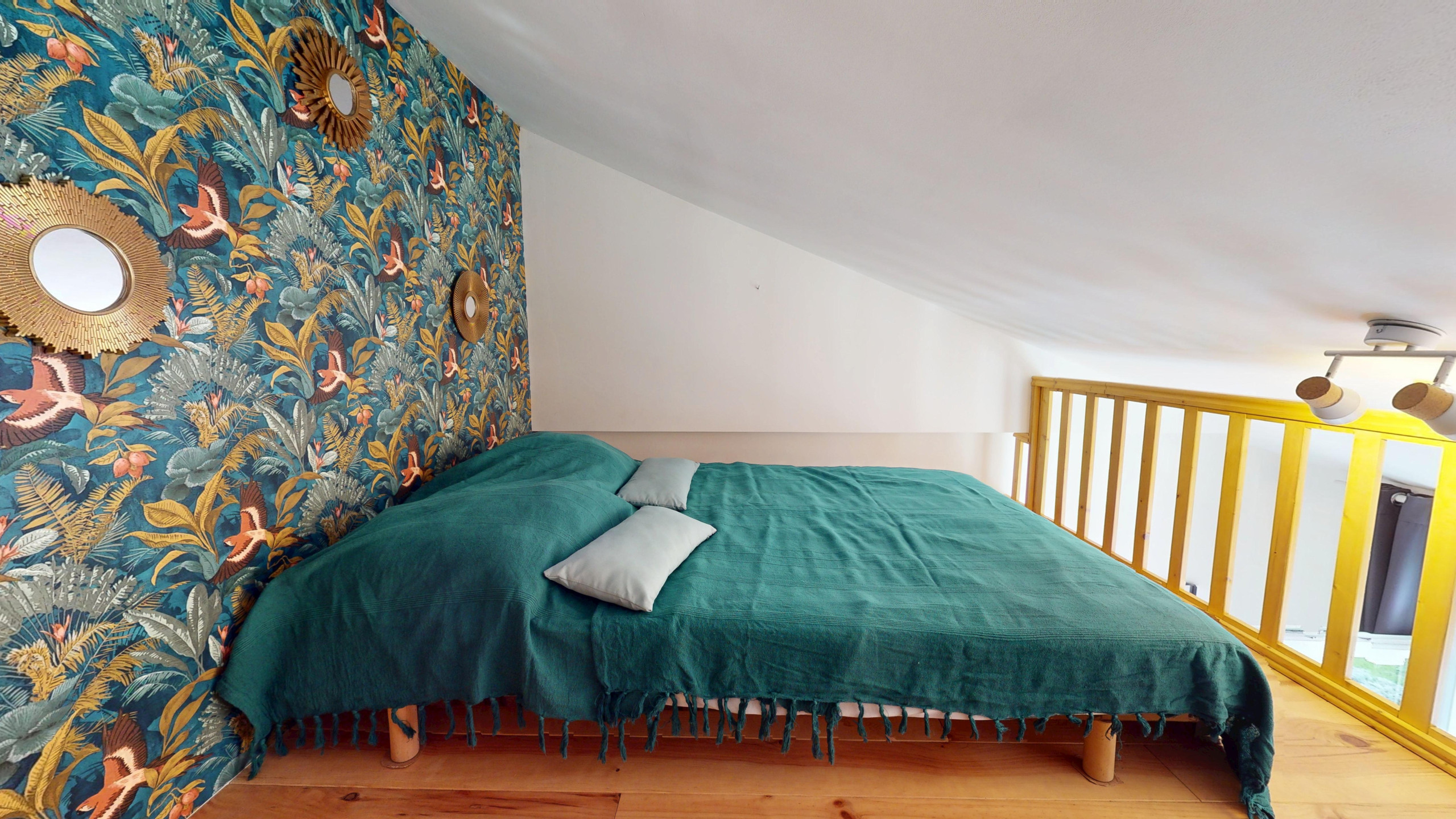 Attention : l’accès à la mezzanine se fait par un escalier de meunier, ce qui nécessite une certaine vigilance.