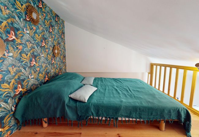 Dès l’entrée, sur la droite et discrètement séparé par des rideaux, vous trouverez un coin nuit avec un lit superposé composé de deux lits simples 90x190, idéal pour les enfants ou amis.