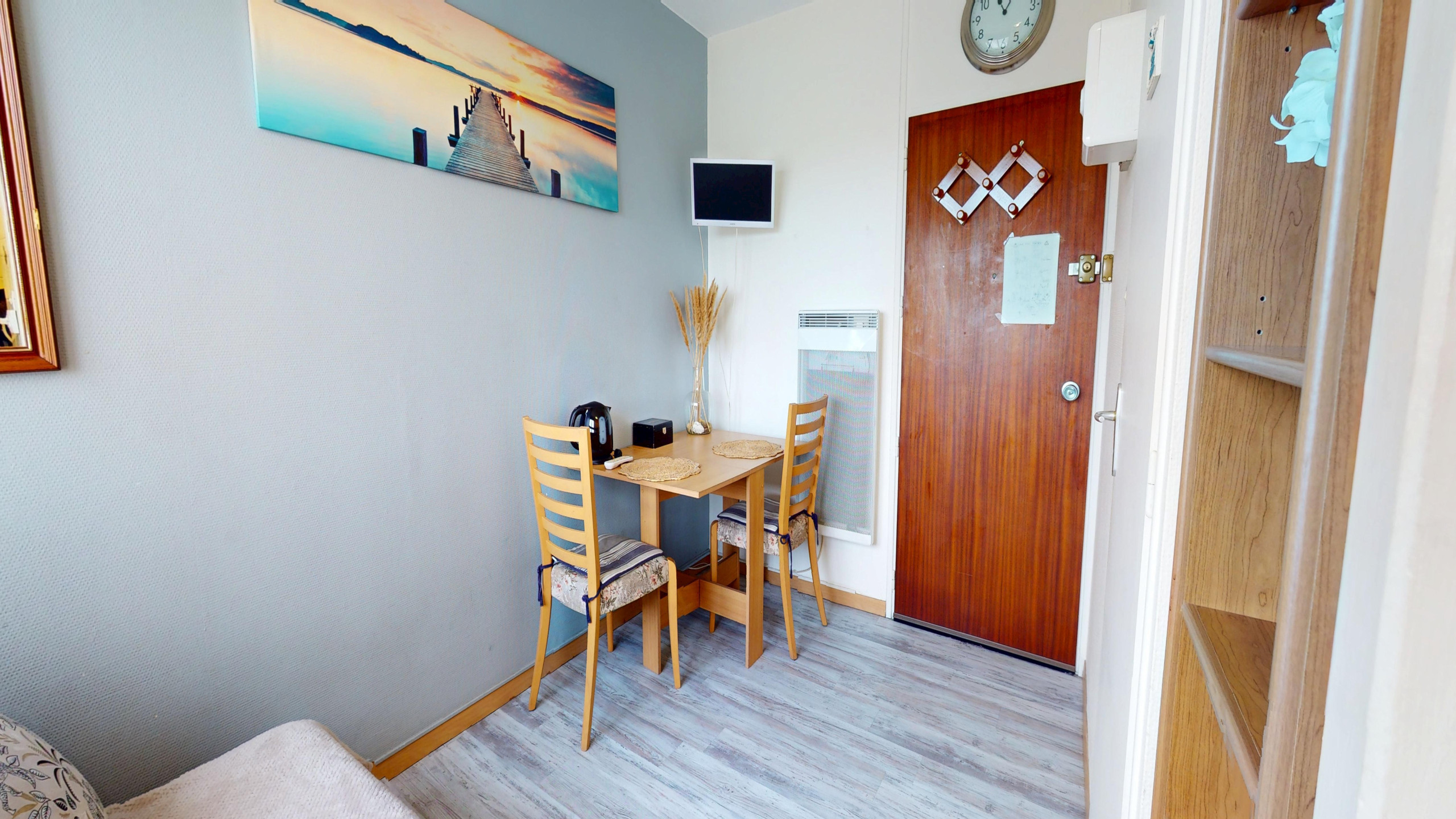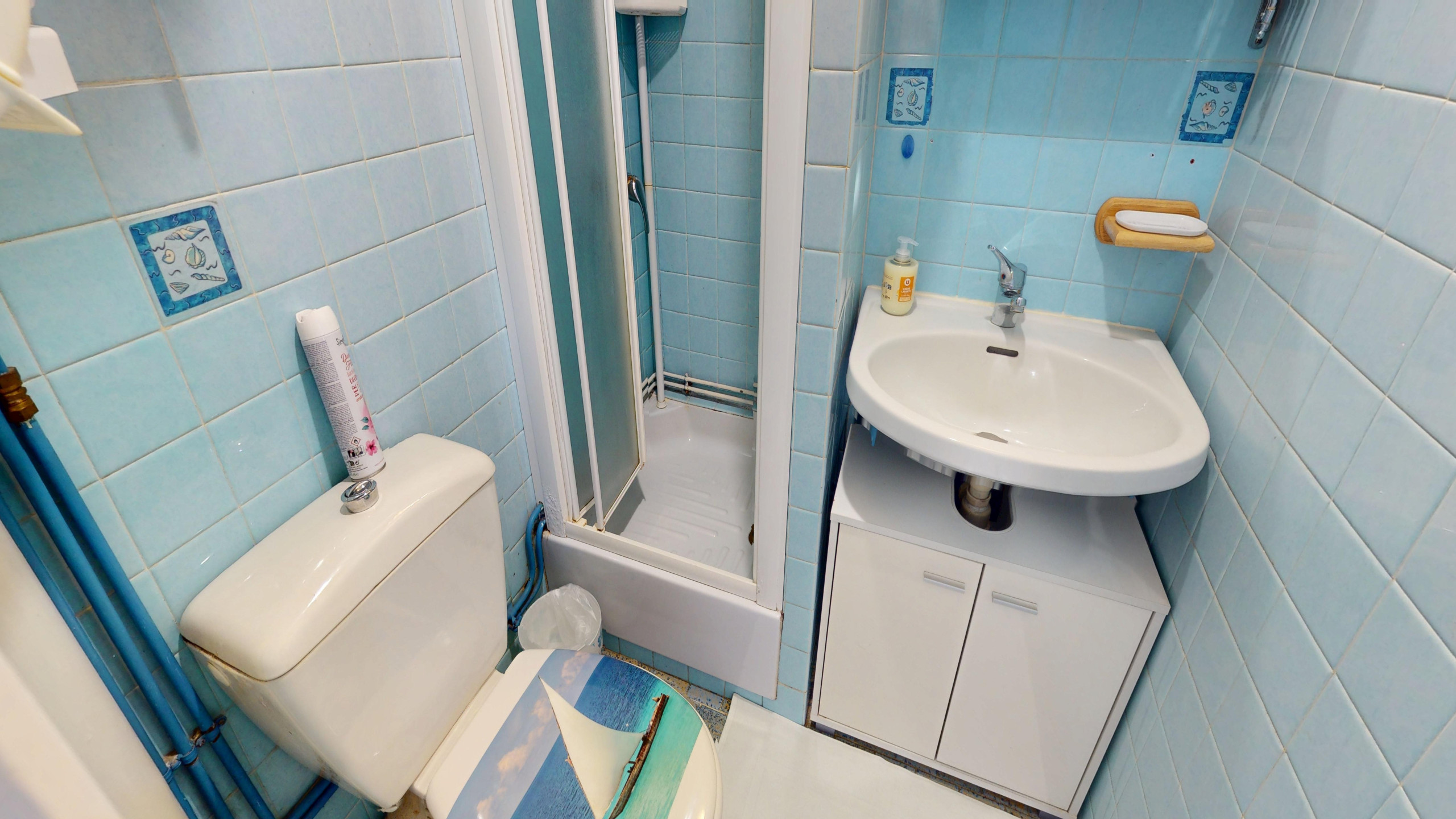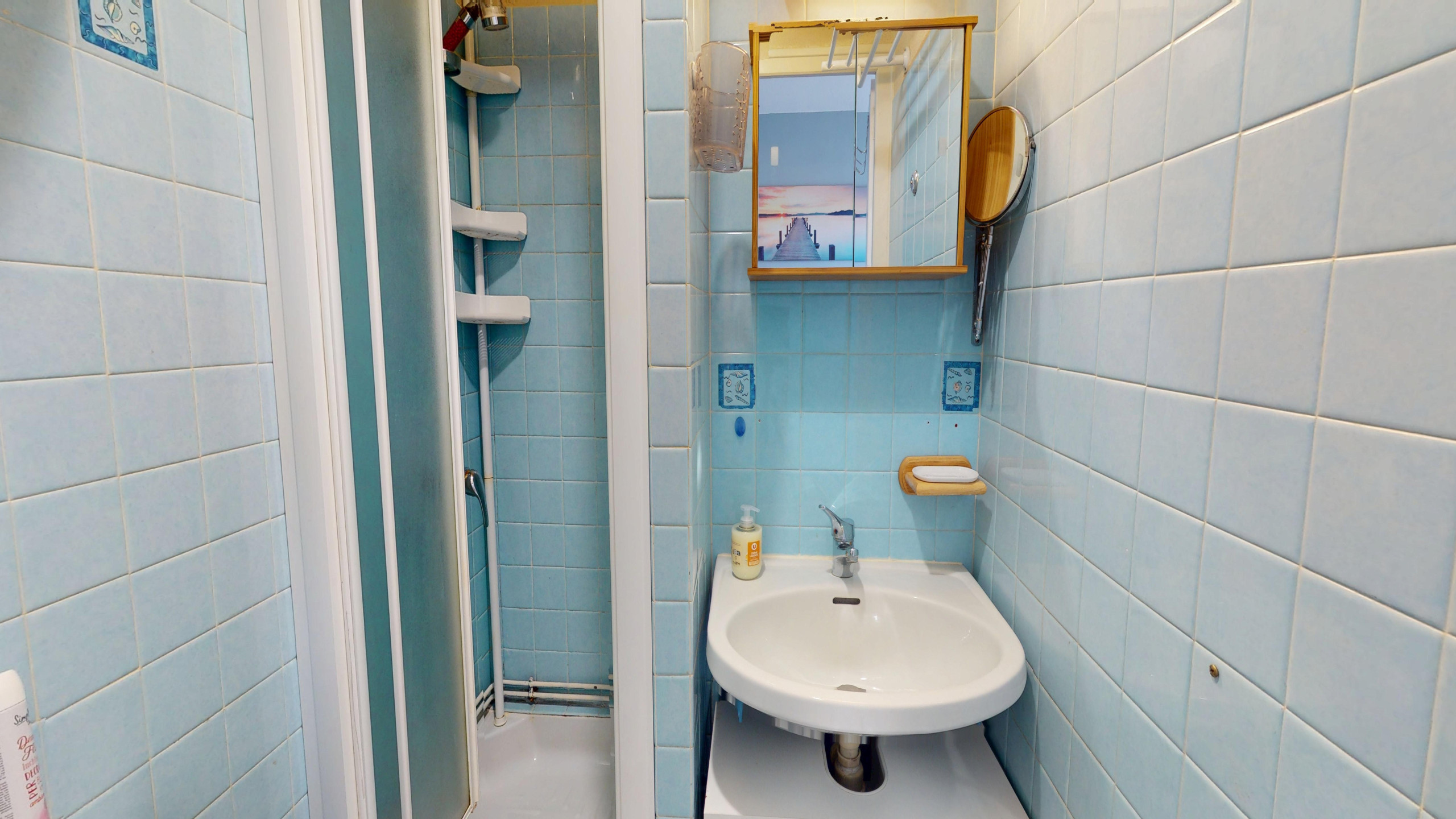 Une petite salle d'eau fonctionnelle avec douche et WC vient compléter ce studio.