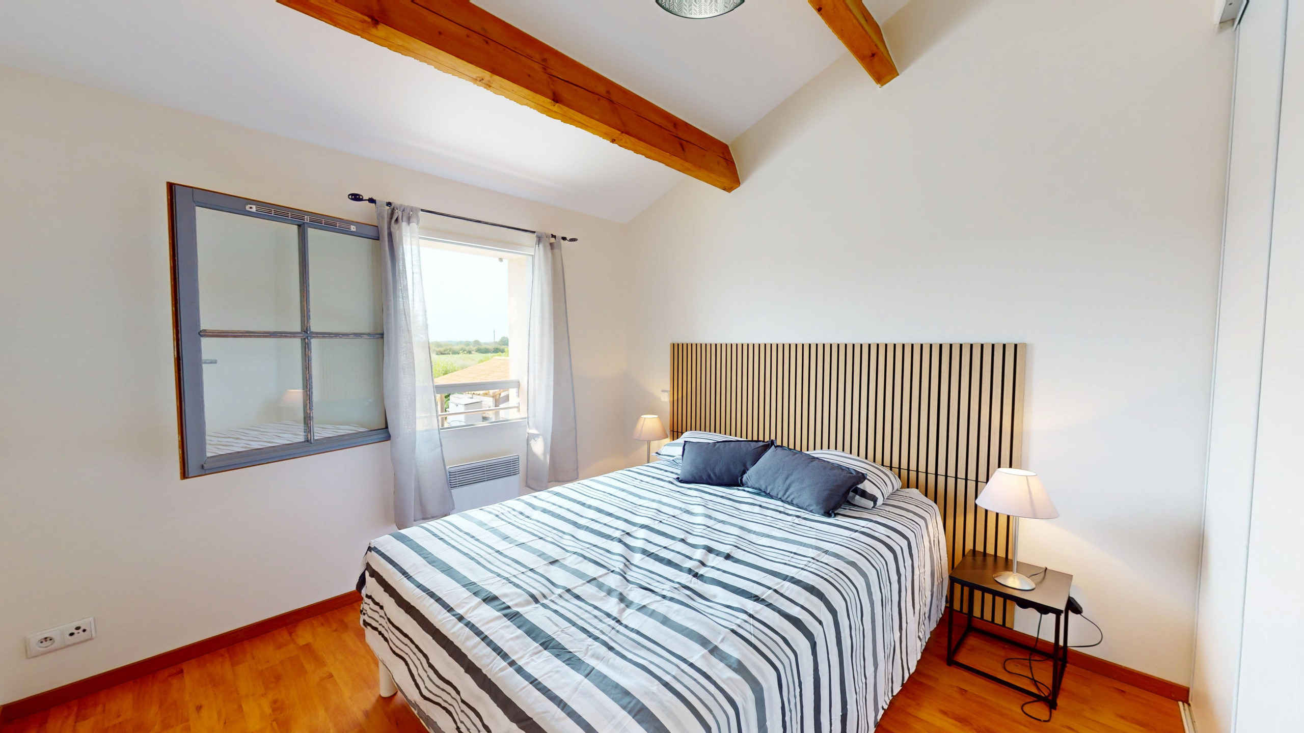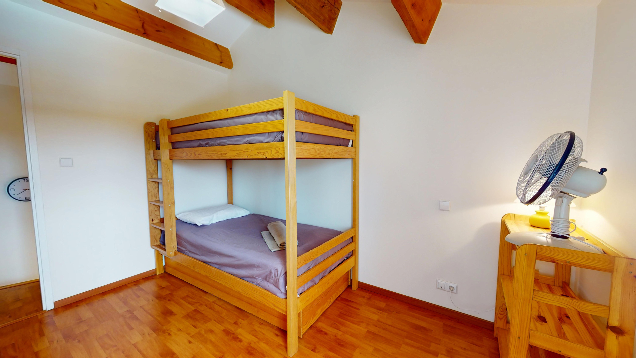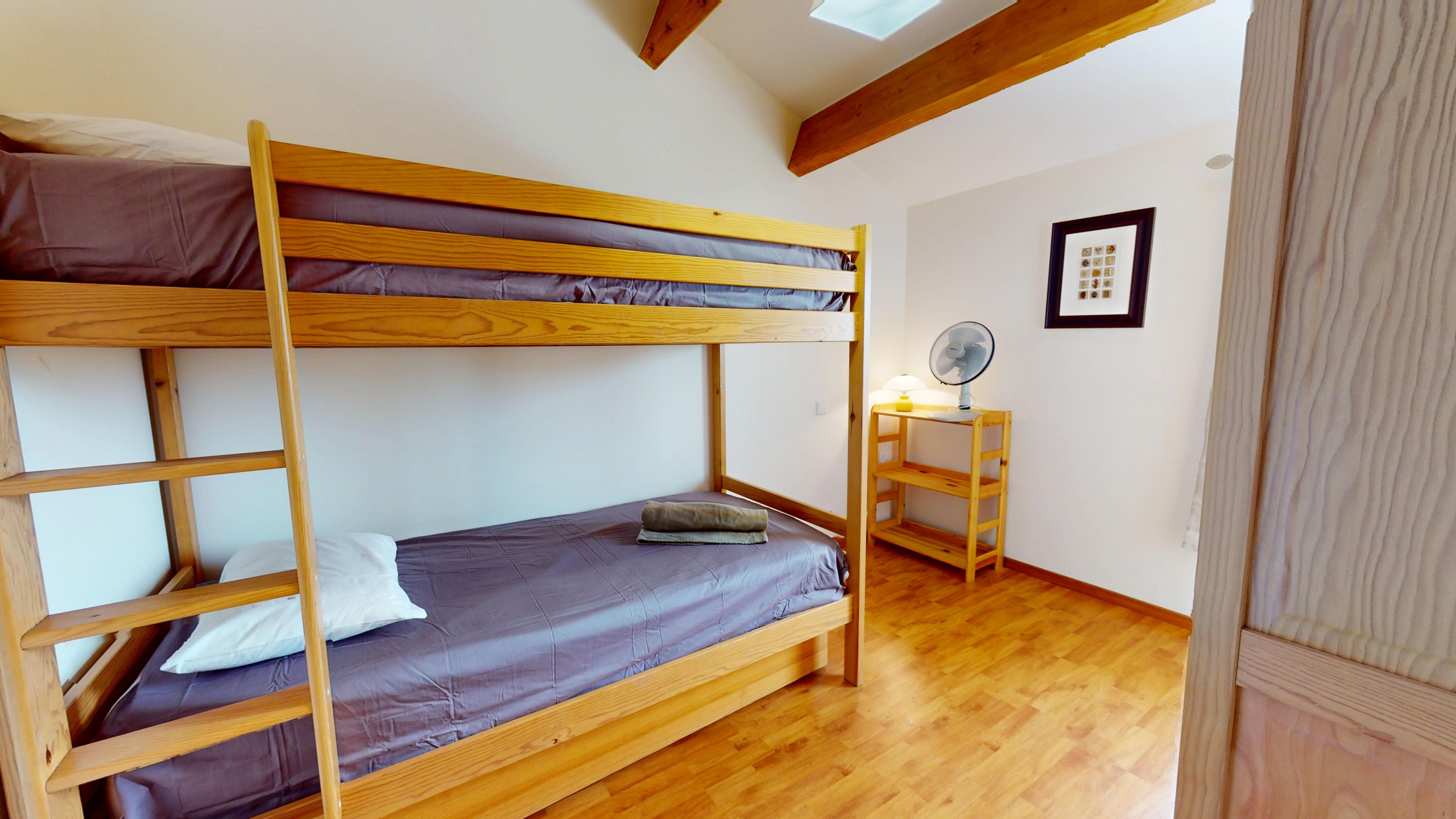 Au rez-de-chaussée, vous trouverez deux chambres : l’une avec un lit double (140x190), idéale pour un sommeil réparateur, et l’autre avec deux lits simples (90x190), parfaite pour les enfants ou des amis. À l’étage, deux autres chambres : une avec un lit double (140x190) et l’autre avec un lit superposé (2 lits simples 90x190), offrant un espace convivial et pratique pour les plus jeunes ou un groupe d’amis.
