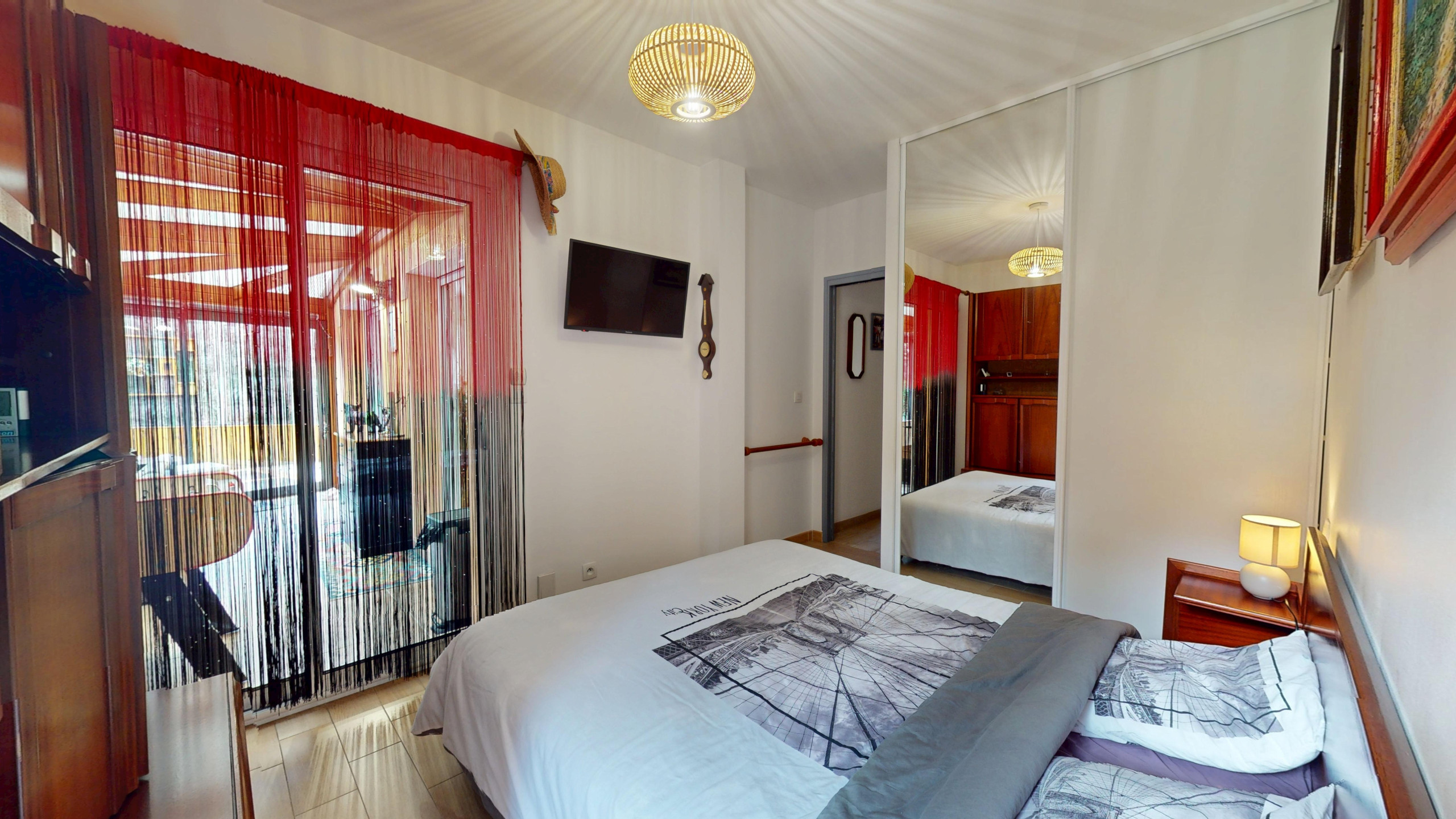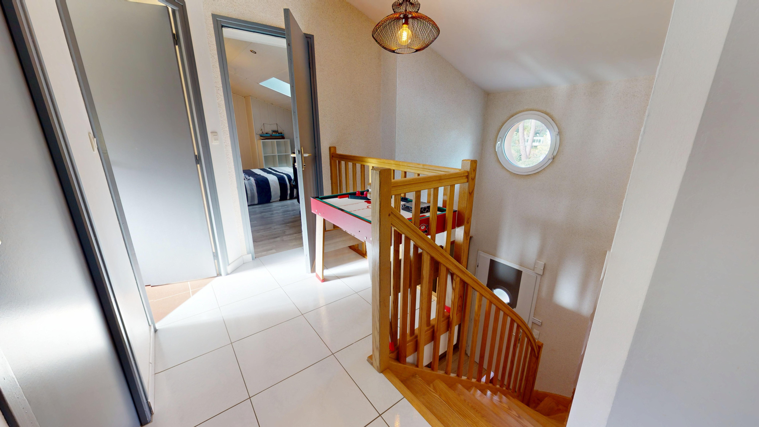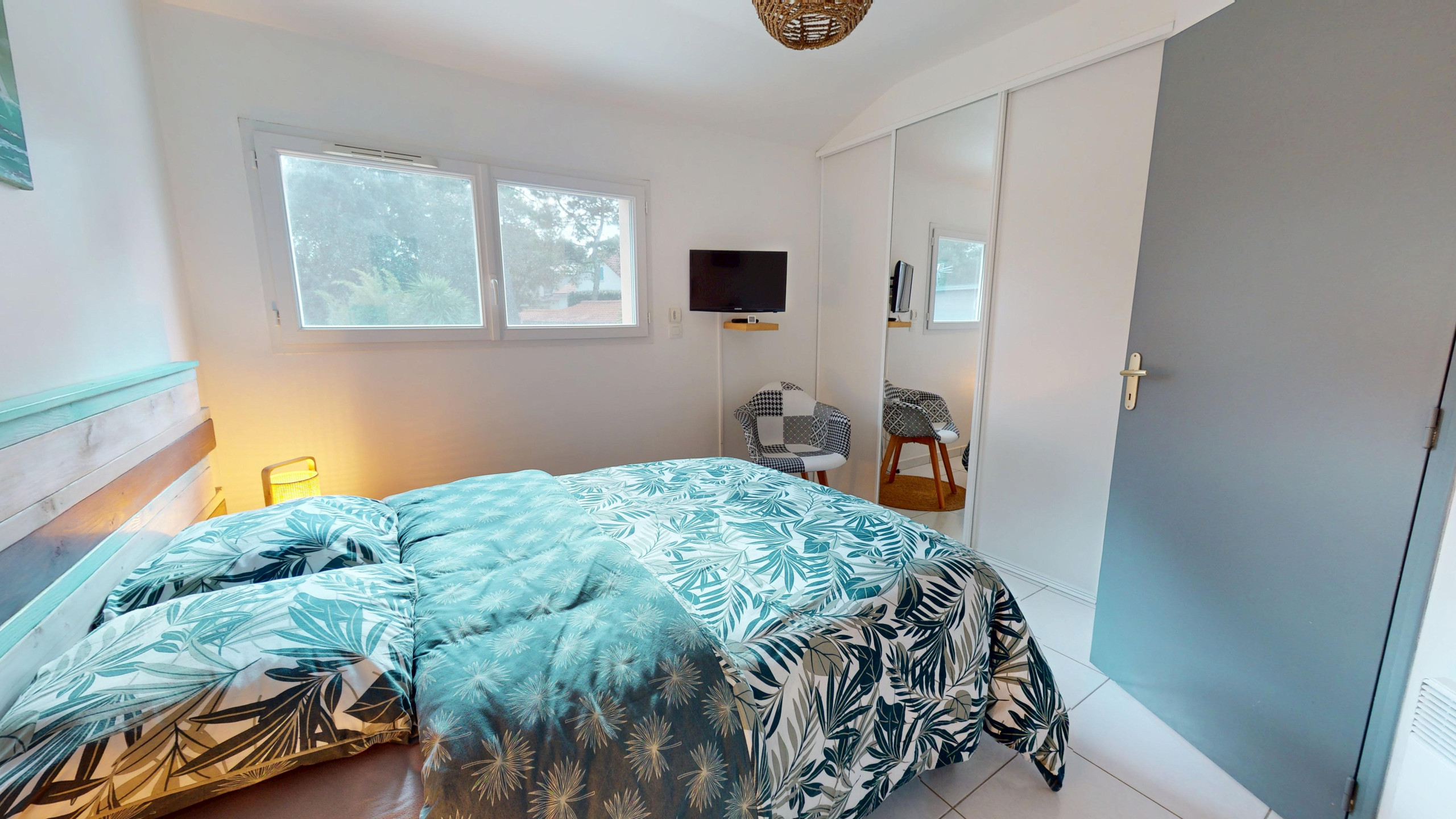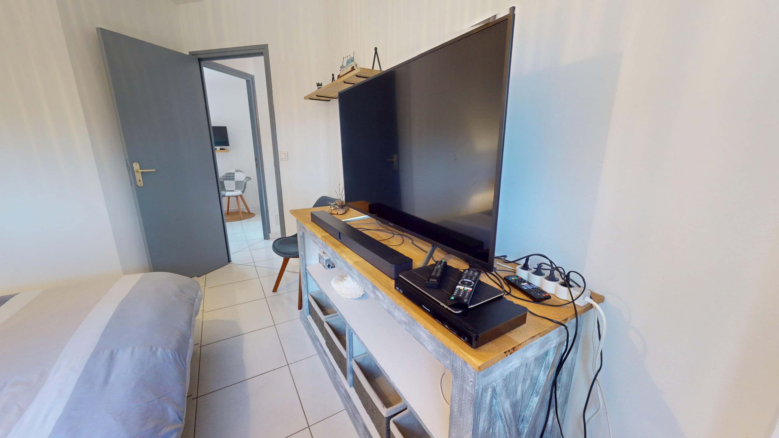 À l’étage, la maison dispose de trois chambres, toutes équipées d’une télévision :