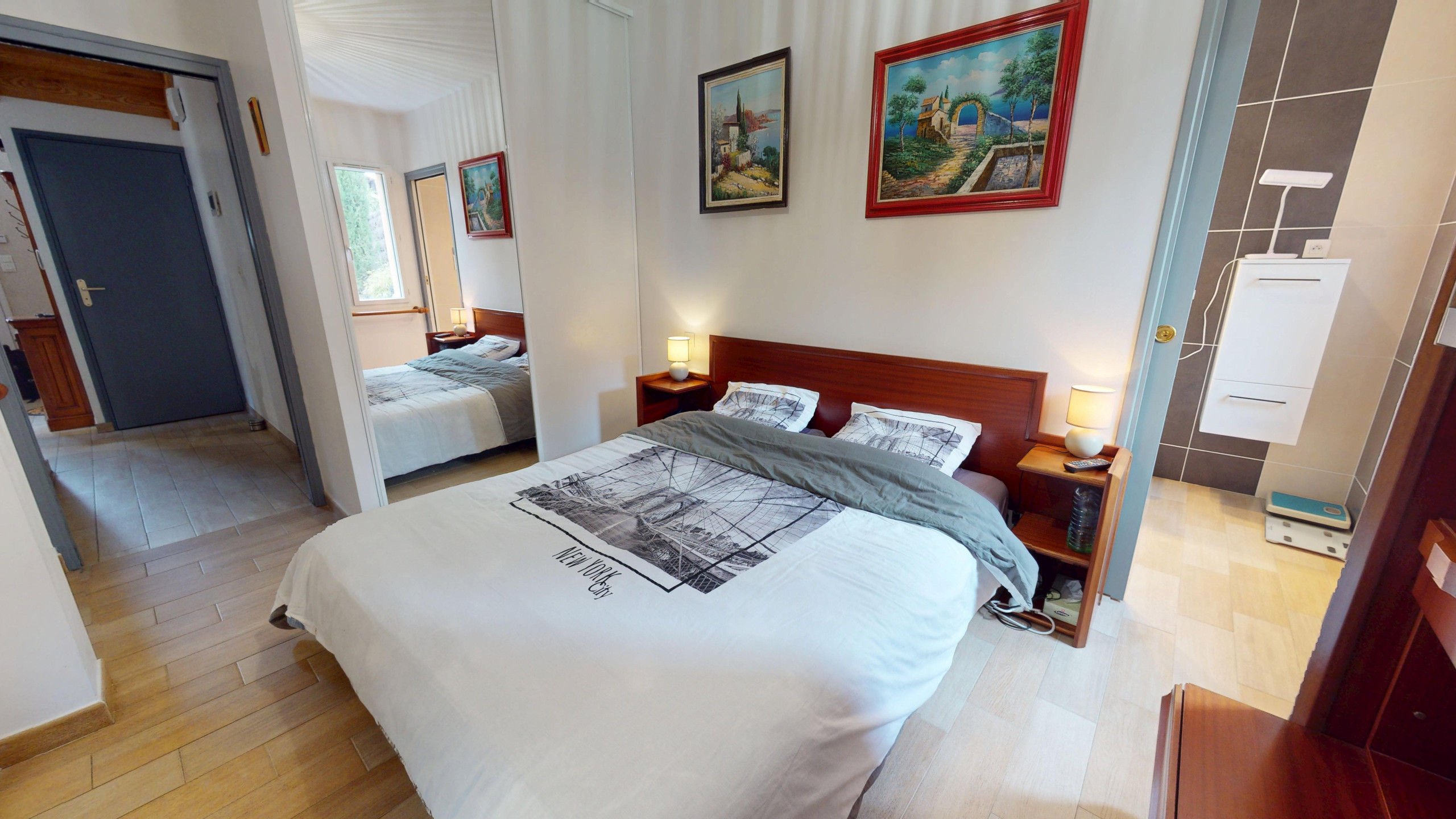 Une salle de bain avec baignoire ainsi que des WC séparés complètent l’espace nuit.