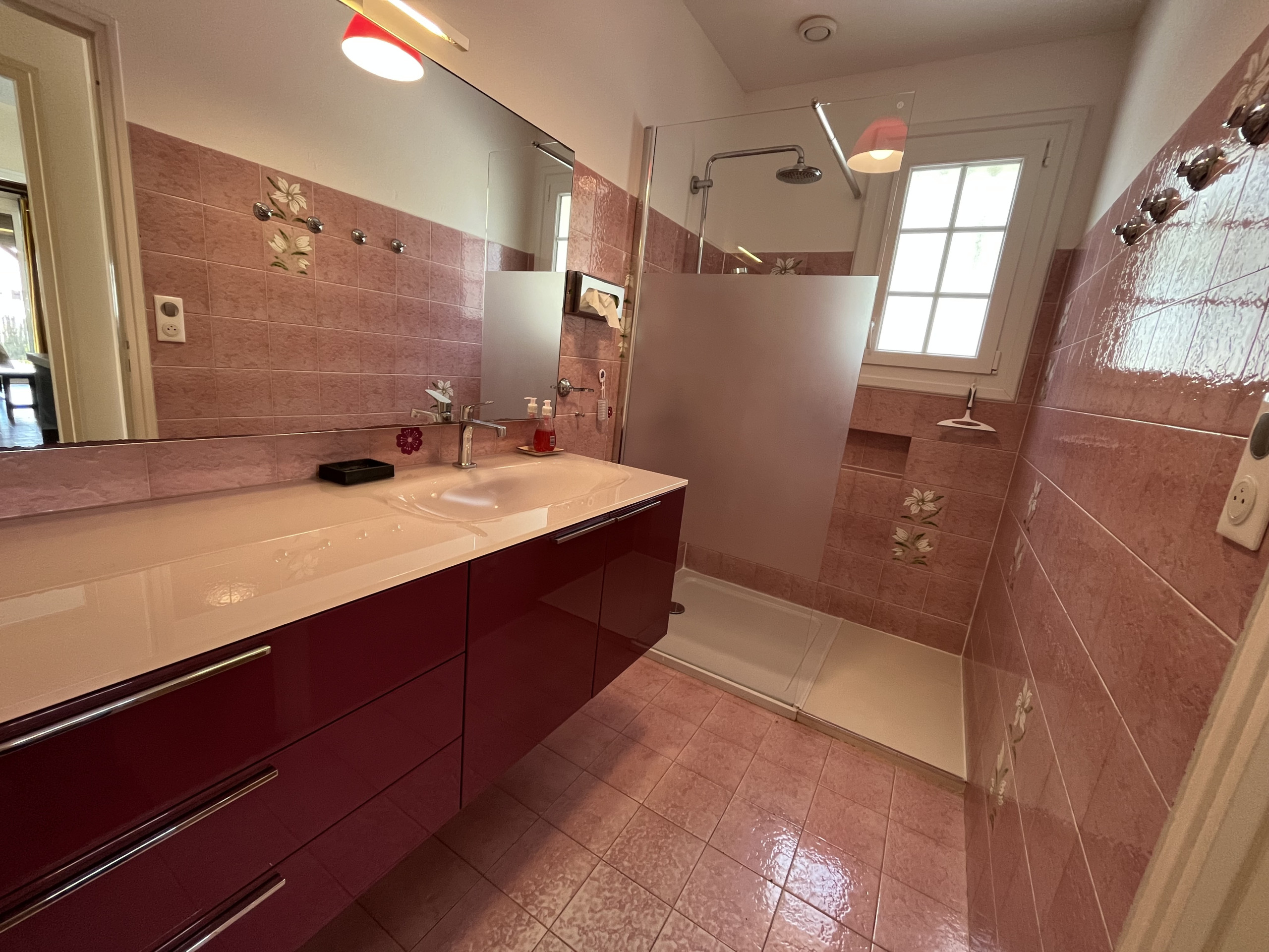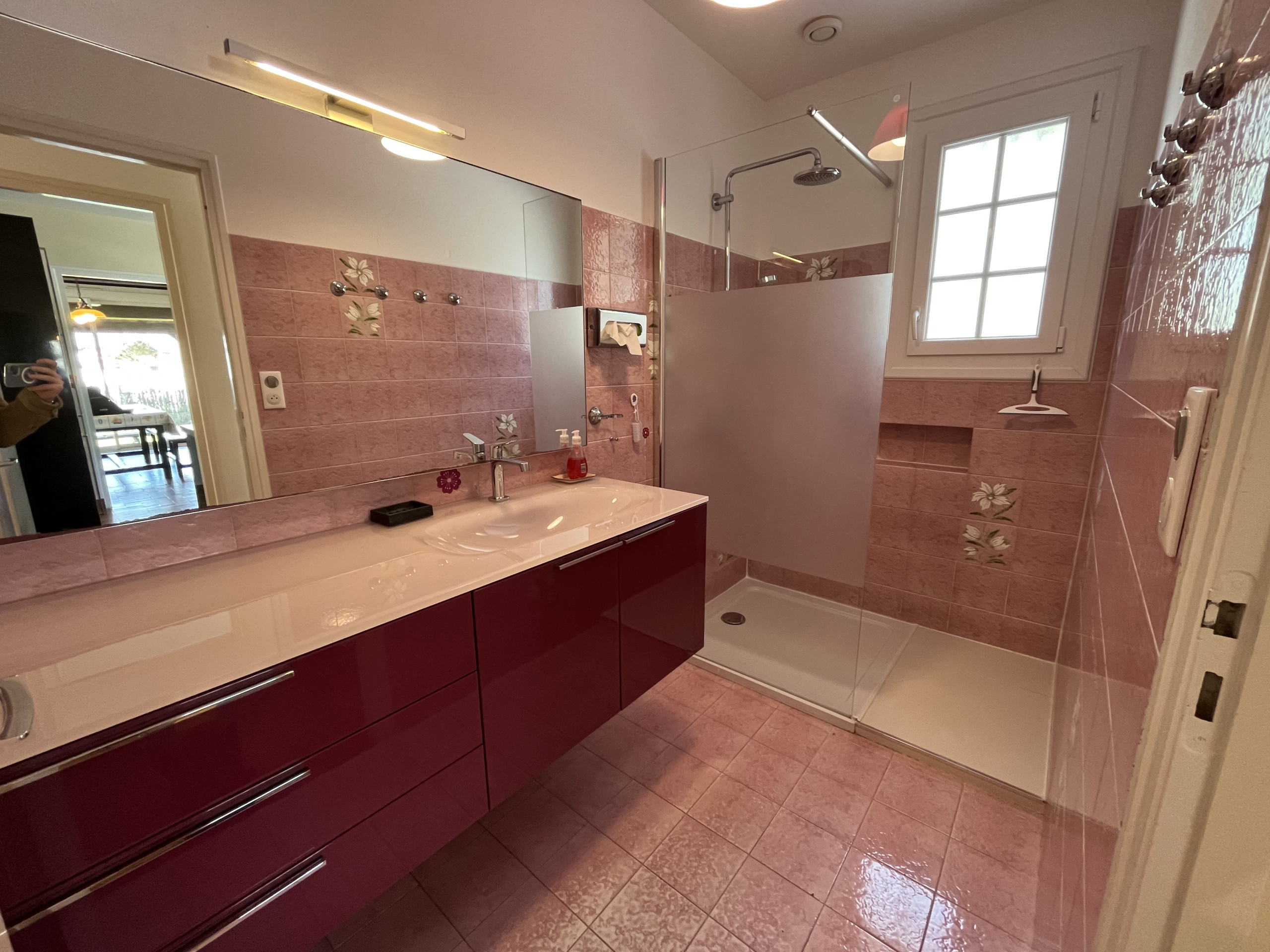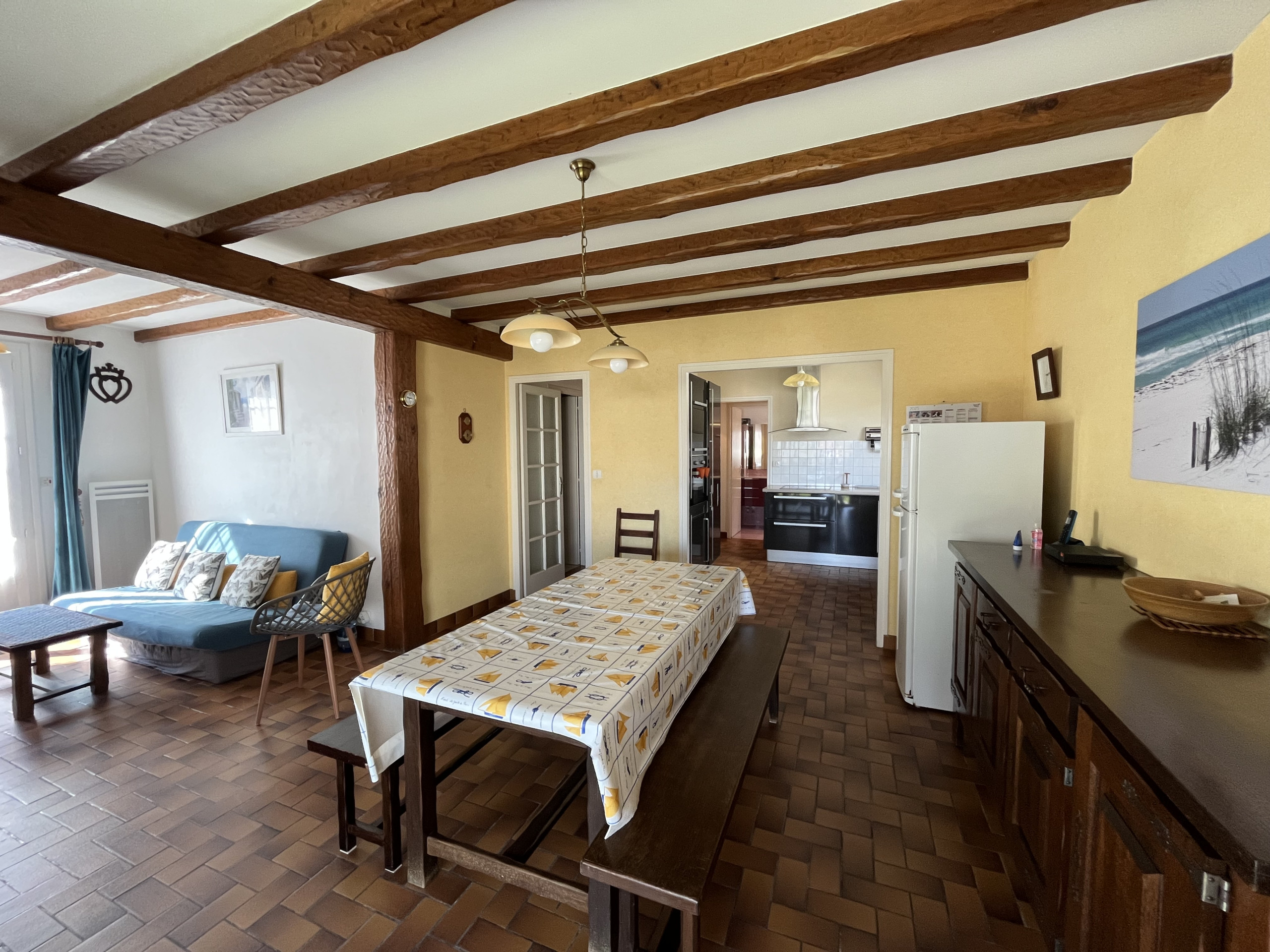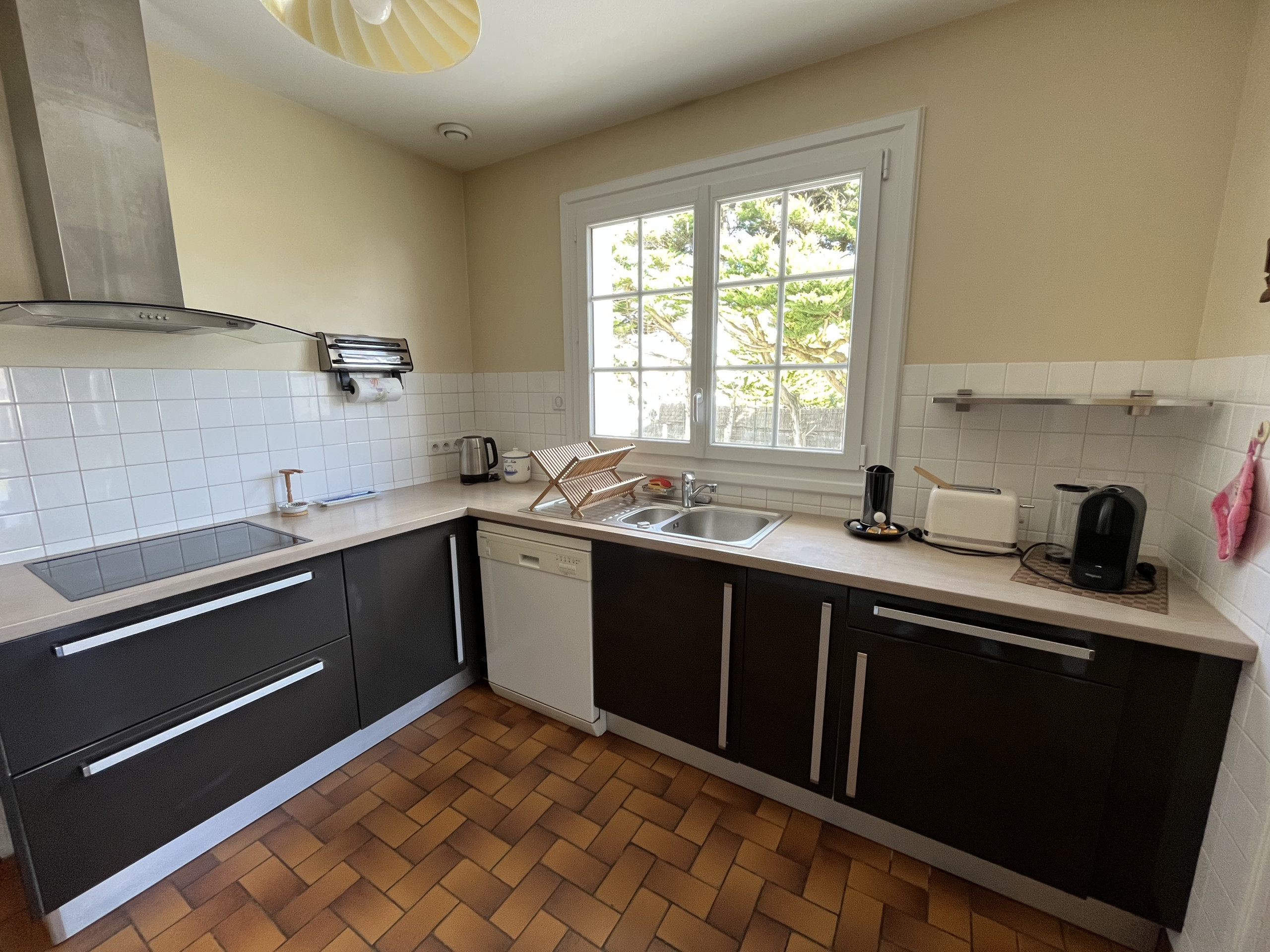 Un intérieur cosy et parfaitement équipé. La villa dispose de trois chambres confortables : une première chambre avec un lit double 140x190, une seconde chambre avec deux lits simples 90x190 et une troisième chambre avec un lit double 140x190. Dans le salon, un canapé-lit double 140x190 permet d’accueillir confortablement des couchages supplémentaires. Vous profiterez d’un salon très cosy, idéal pour se détendre après une journée à la plage ainsi qu'une grande salle à manger conviviale avec une table et des bancs sur toute la longueur, parfaite pour partager de bons repas tous ensemble. La cuisine ouverte, moderne et entièrement équipée, séduit par son style contemporain et ses plaques vitrocéramiques. Ouverte sur la salle à manger et le salon, elle offre un espace convivial et fonctionnel, idéal pour cuisiner tout en restant avec vos proches. La villa dispose également d’une très grande salle de bain avec une douche spacieuse et moderne, pensée pour le confort de toute la famille.