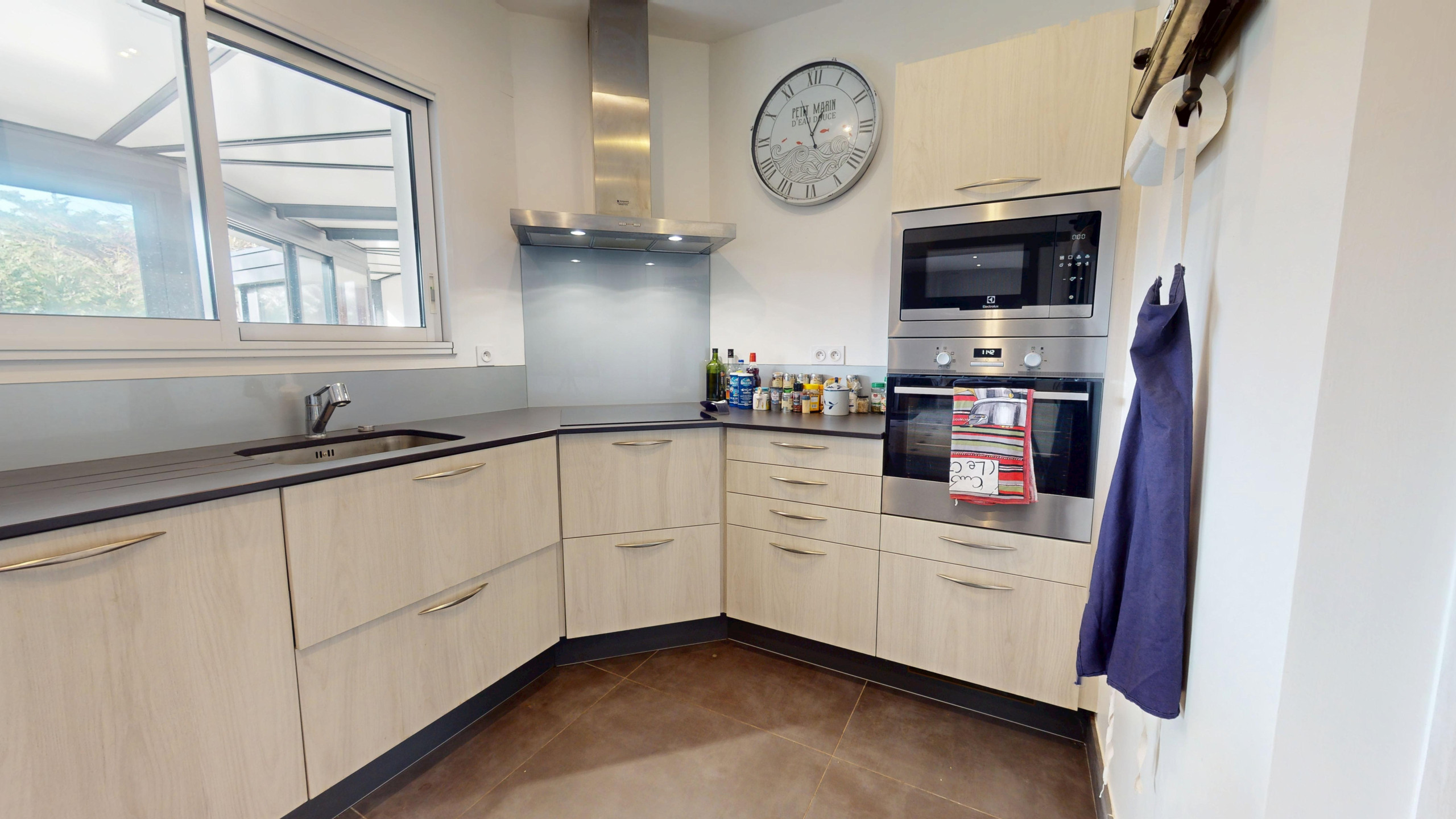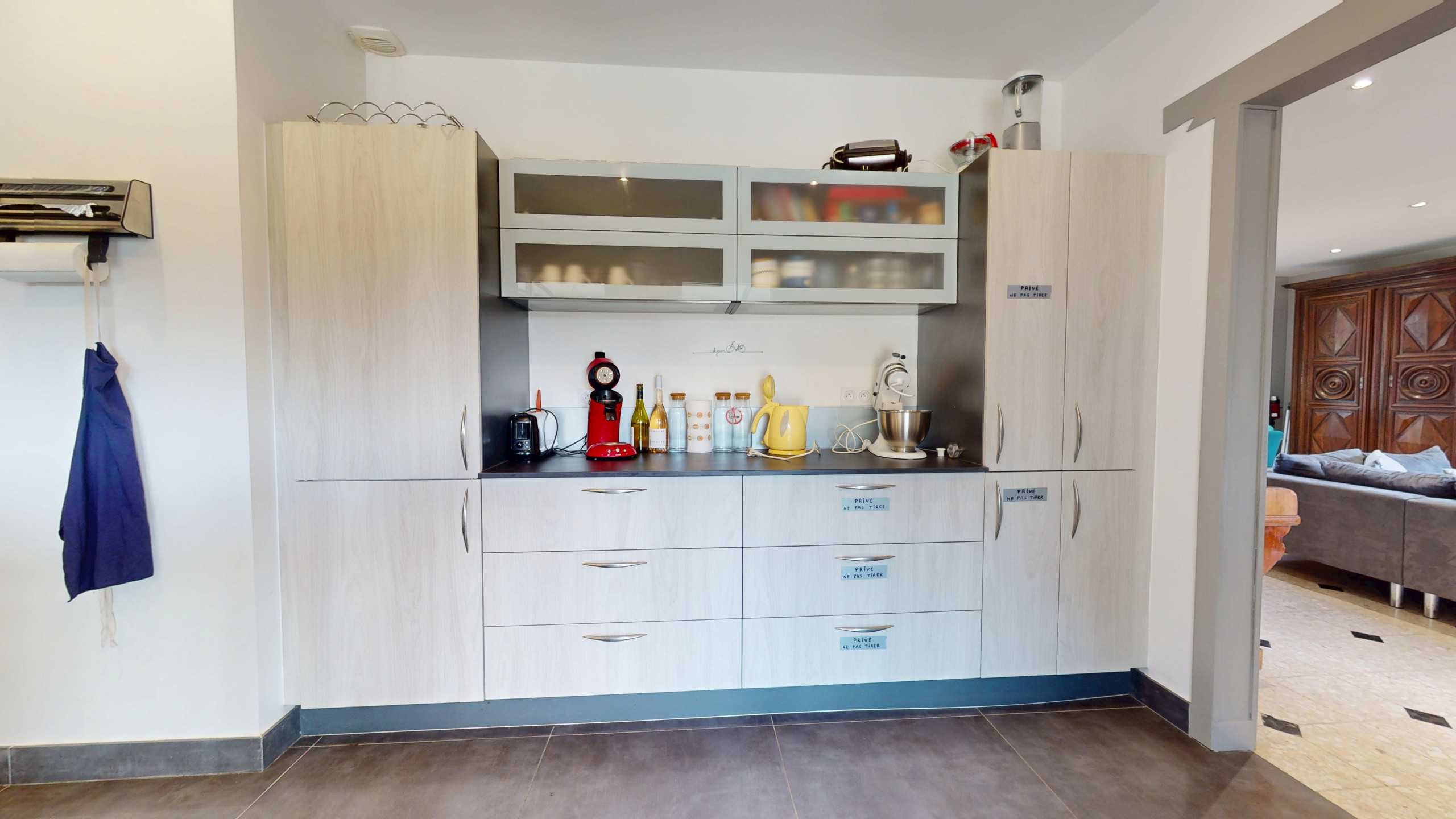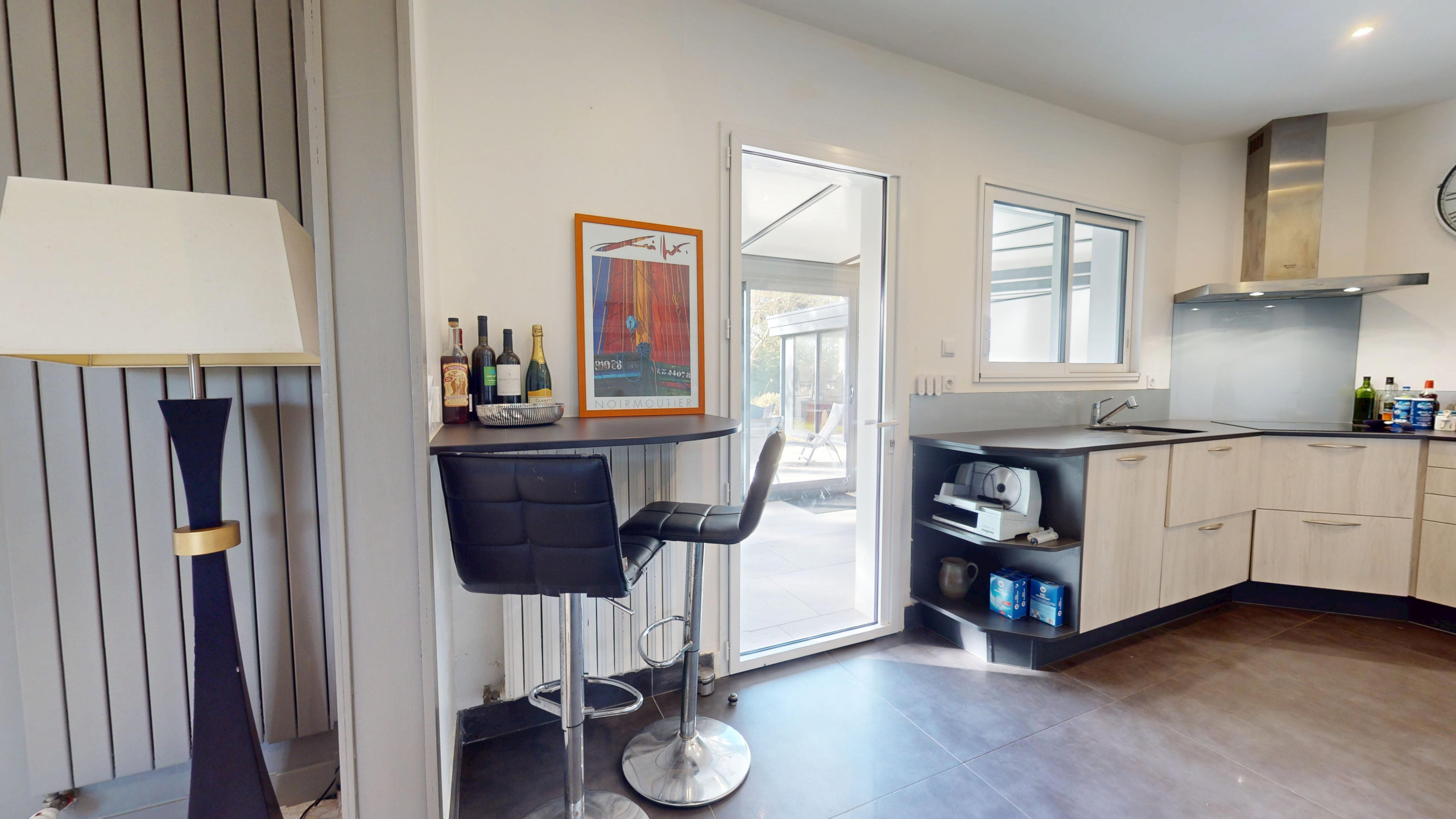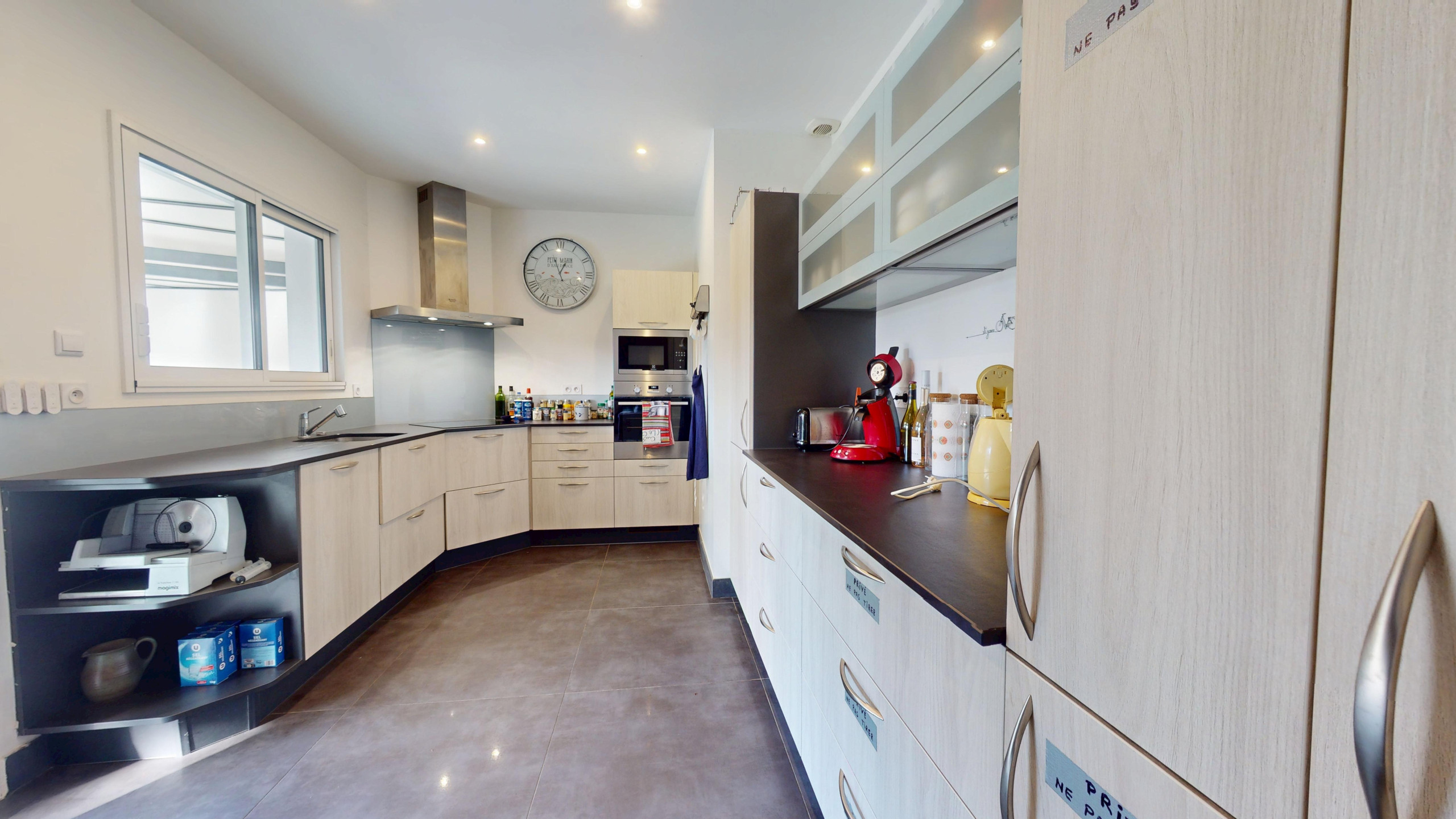 La villa dispose d’une très grande cuisine ouverte, moderne et totalement équipée, avec plaques à induction, de nombreux rangements et un coin mini-bar, idéale pour cuisiner et partager des moments conviviaux.