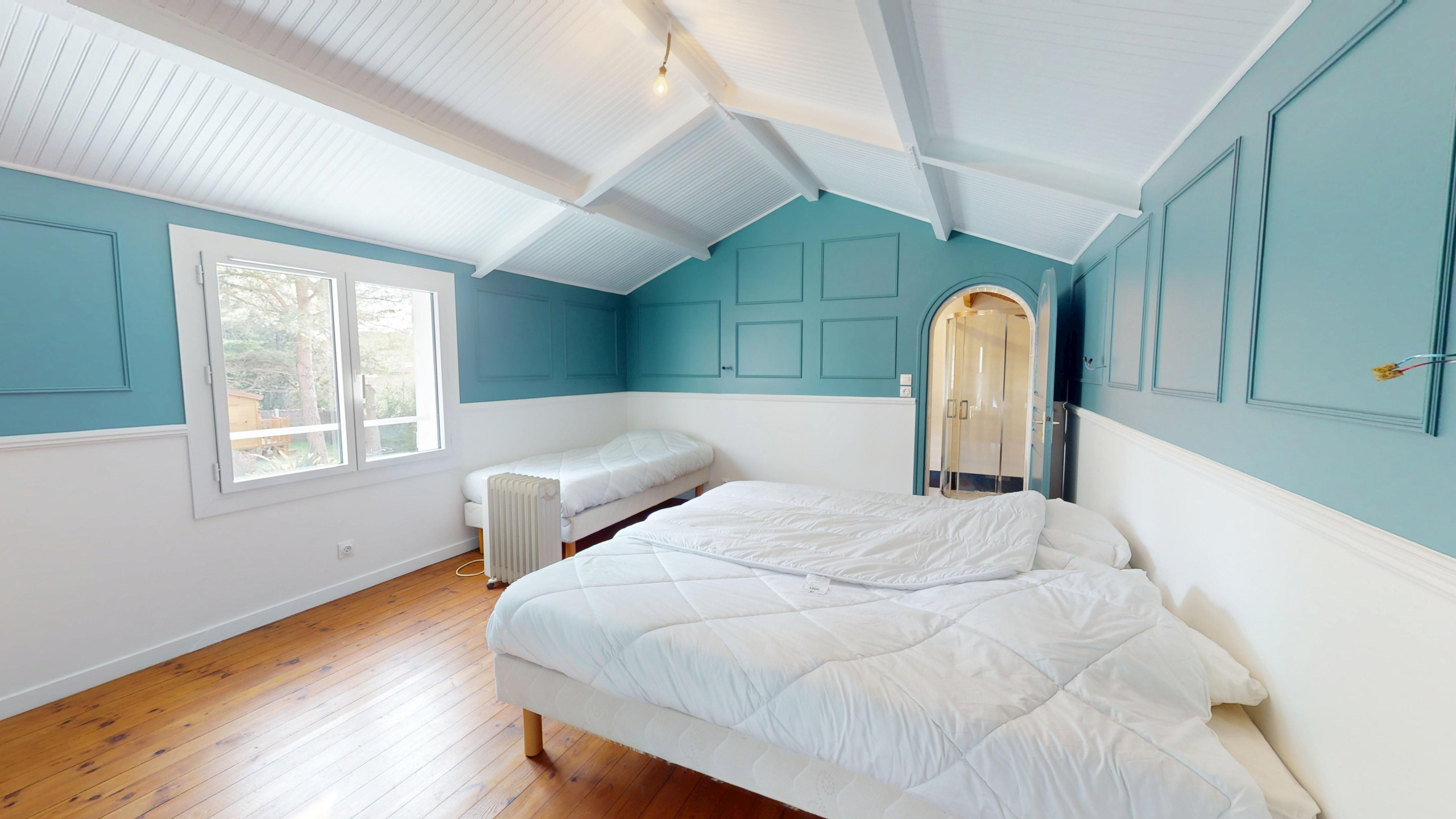 Chambre 4 : deux lits simples 90x190 rapprochés pour former un lit double + un lit simple 90x190 supplémentaire