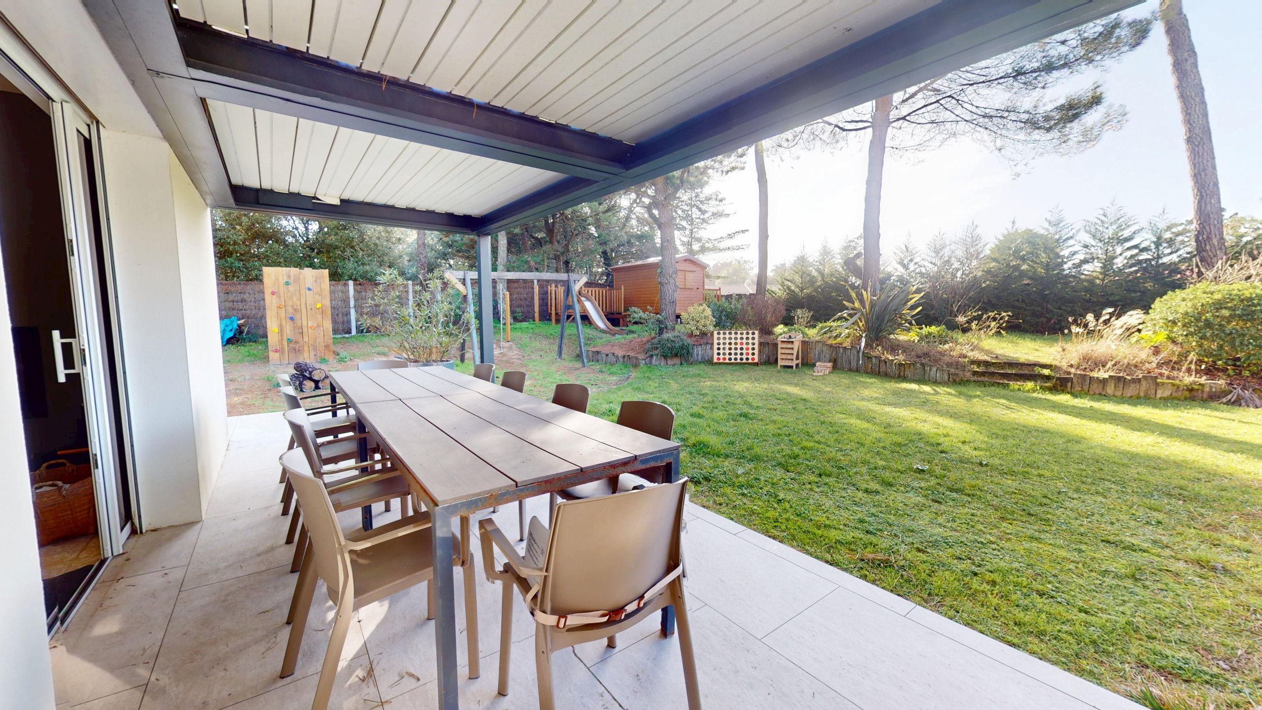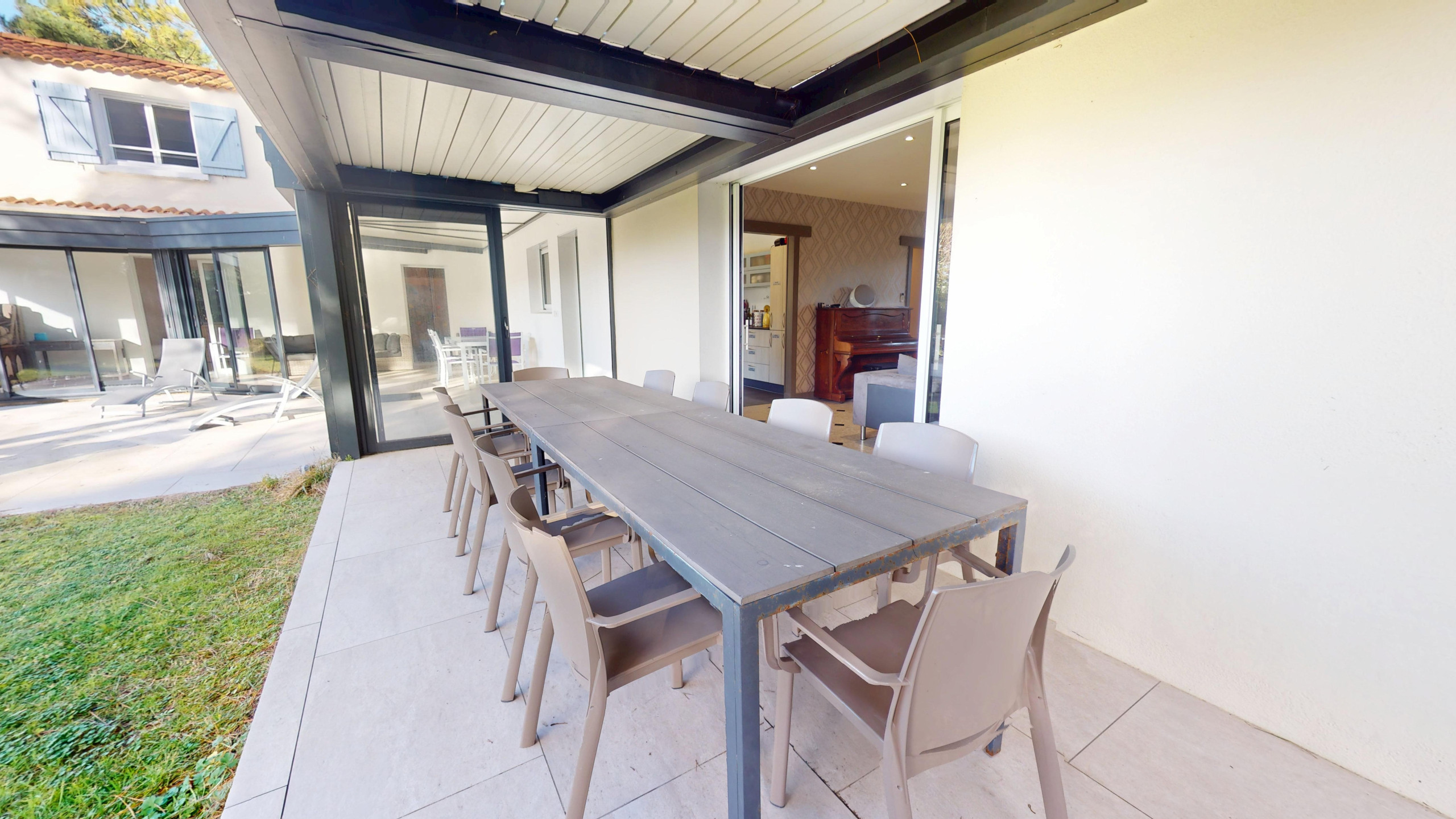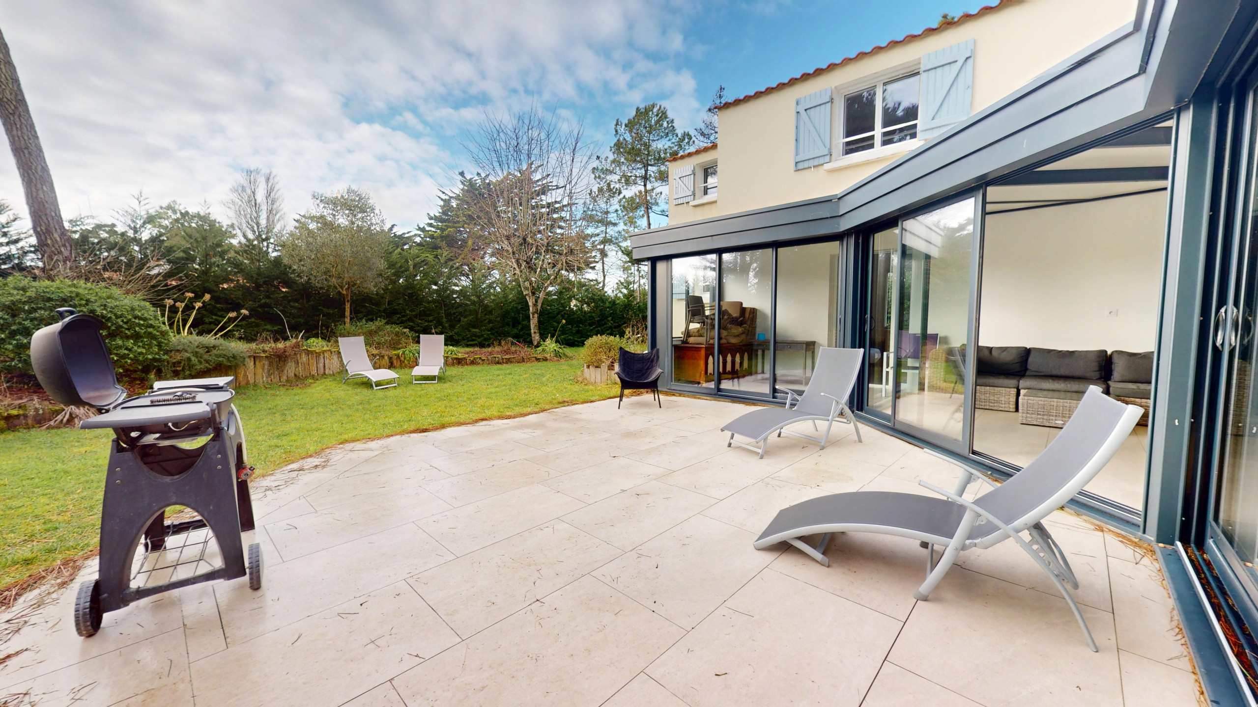 Devant la véranda, une seconde terrasse complète les espaces extérieurs.