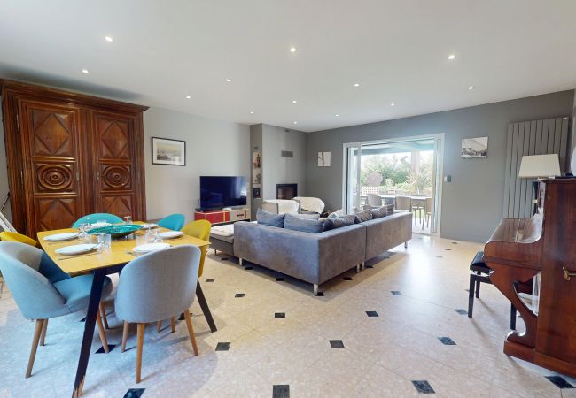 Cette villa spacieuse de 171 m² peut accueillir jusqu’à 10 personnes. Pensée pour le partage et la détente, elle séduit par ses beaux volumes, ses nombreux espaces de vie et son grand jardin entièrement clos, parfait pour petits et grands.